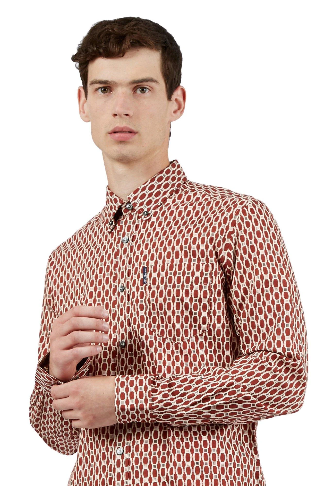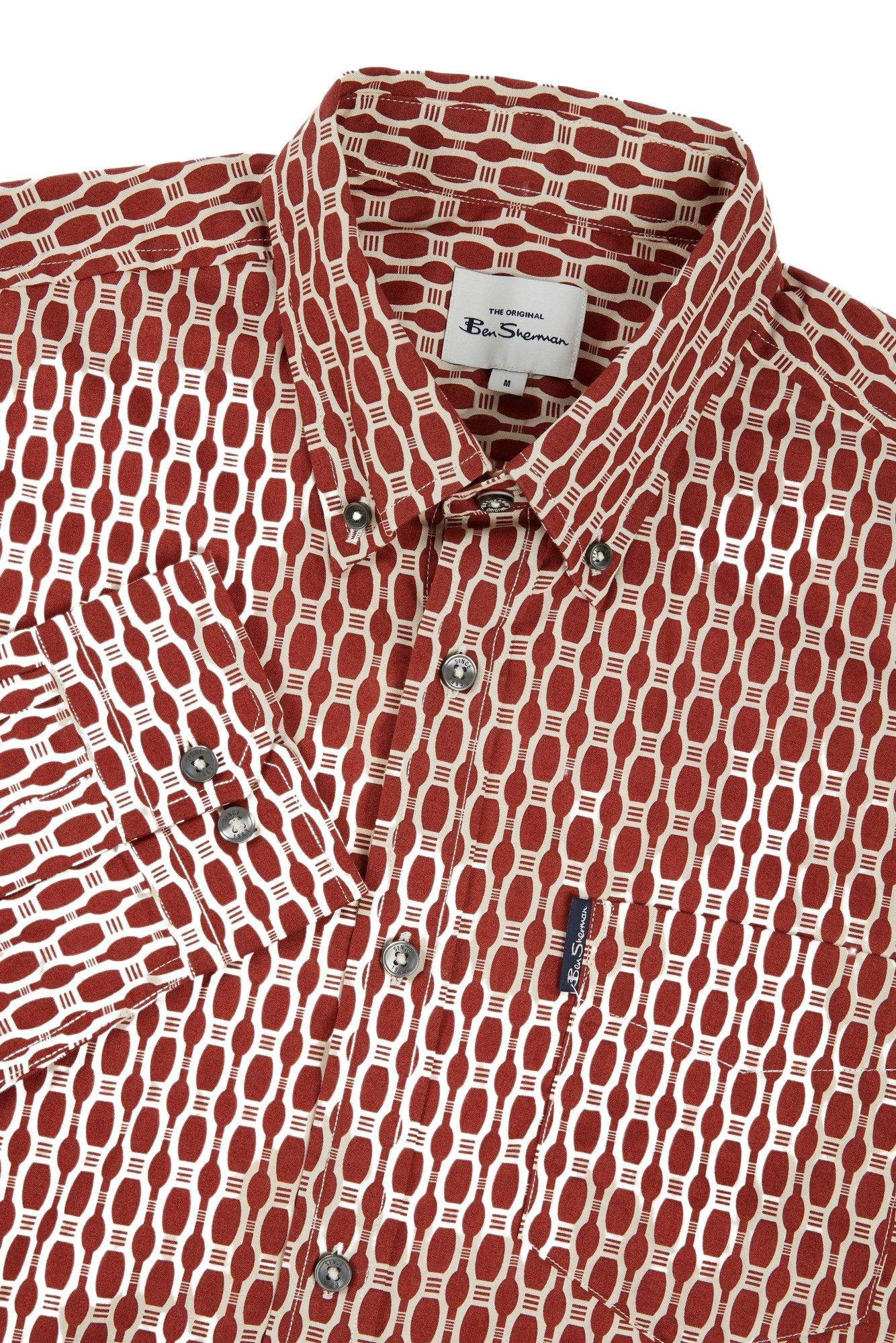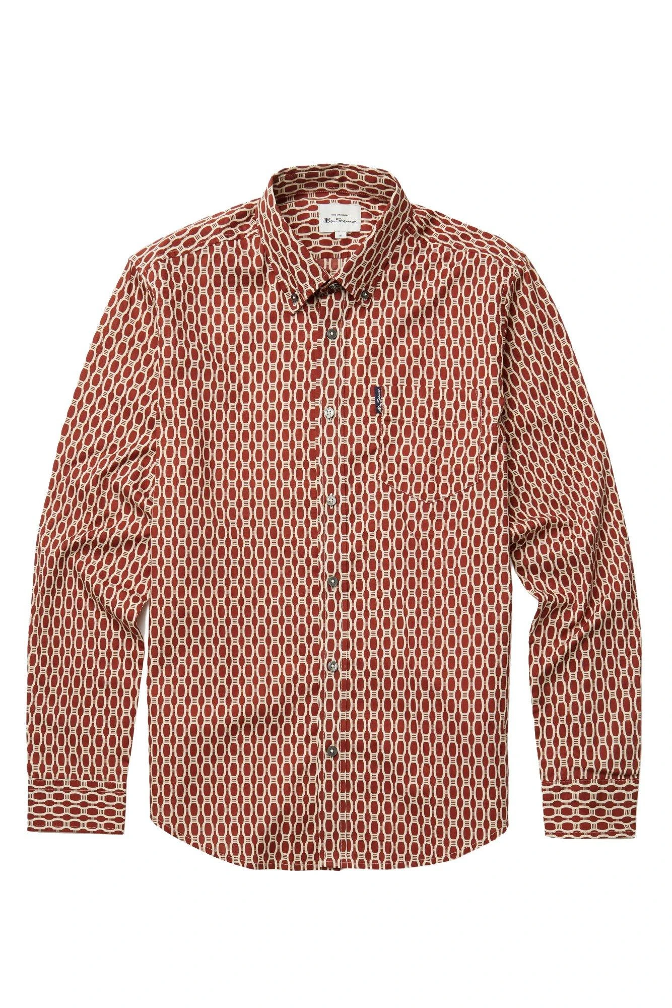 Abstract Print Shirt by Ben Sherman. A long sleeved casual shirt by Ben Sherman. This shirt is designed with an all over abstract print and a button down collar. Pair with denim jeans for a smart casual look.