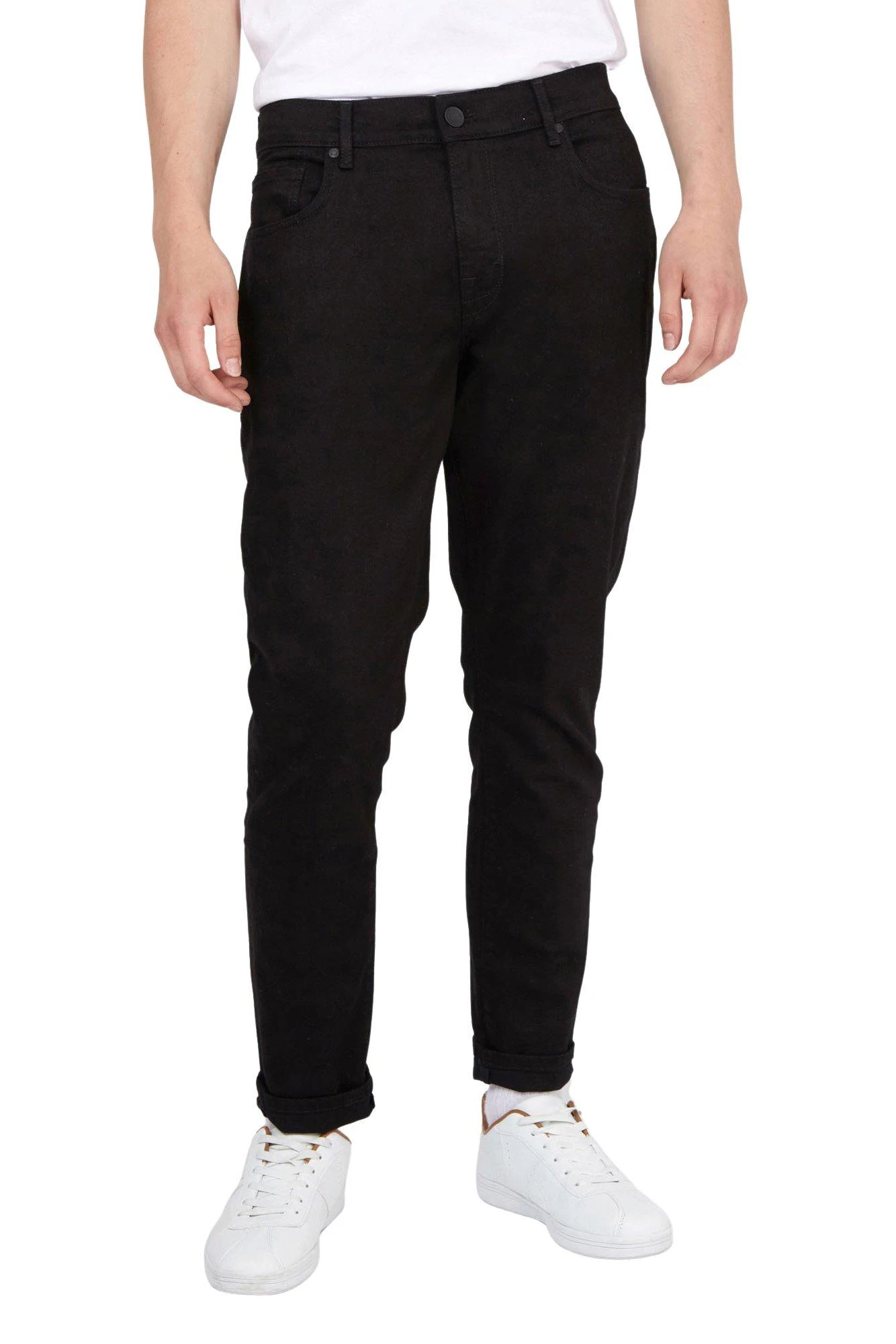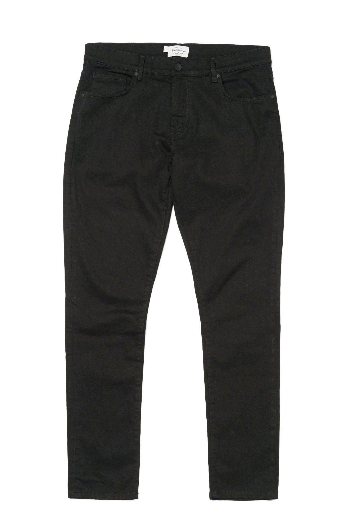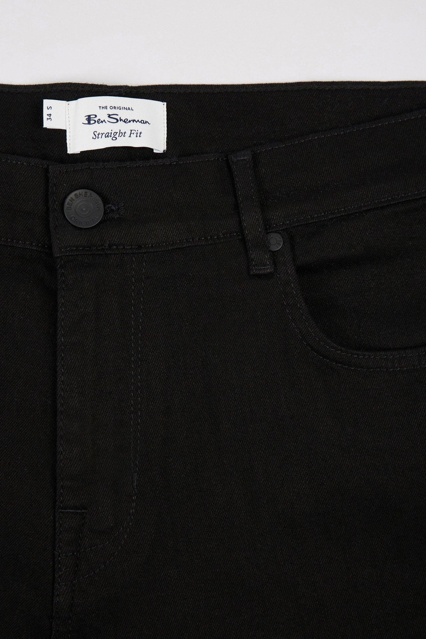 Cotton blend black jeans in a straight fit from Ben Sherman, a part of its signature range. Features include 5 pockets and a branded leather patch on the rear. Style with a t-shirt and a Harrington jacket for a casual look.