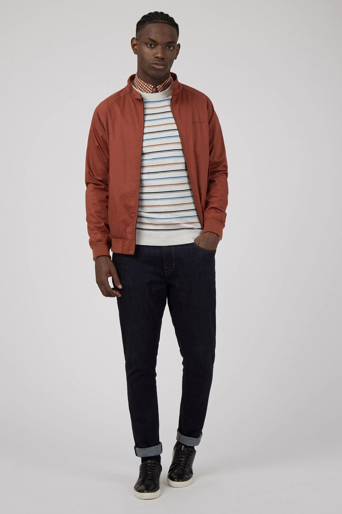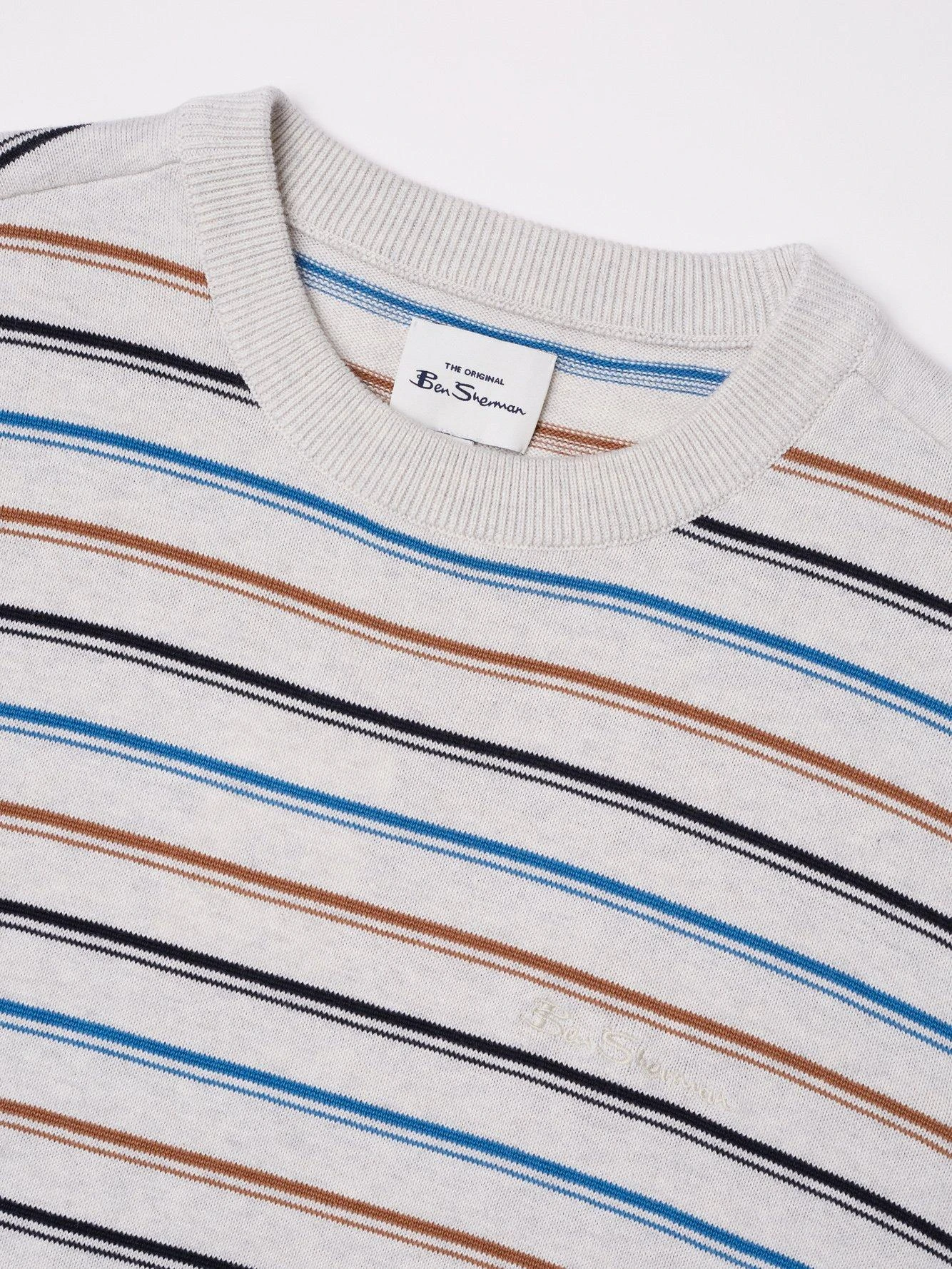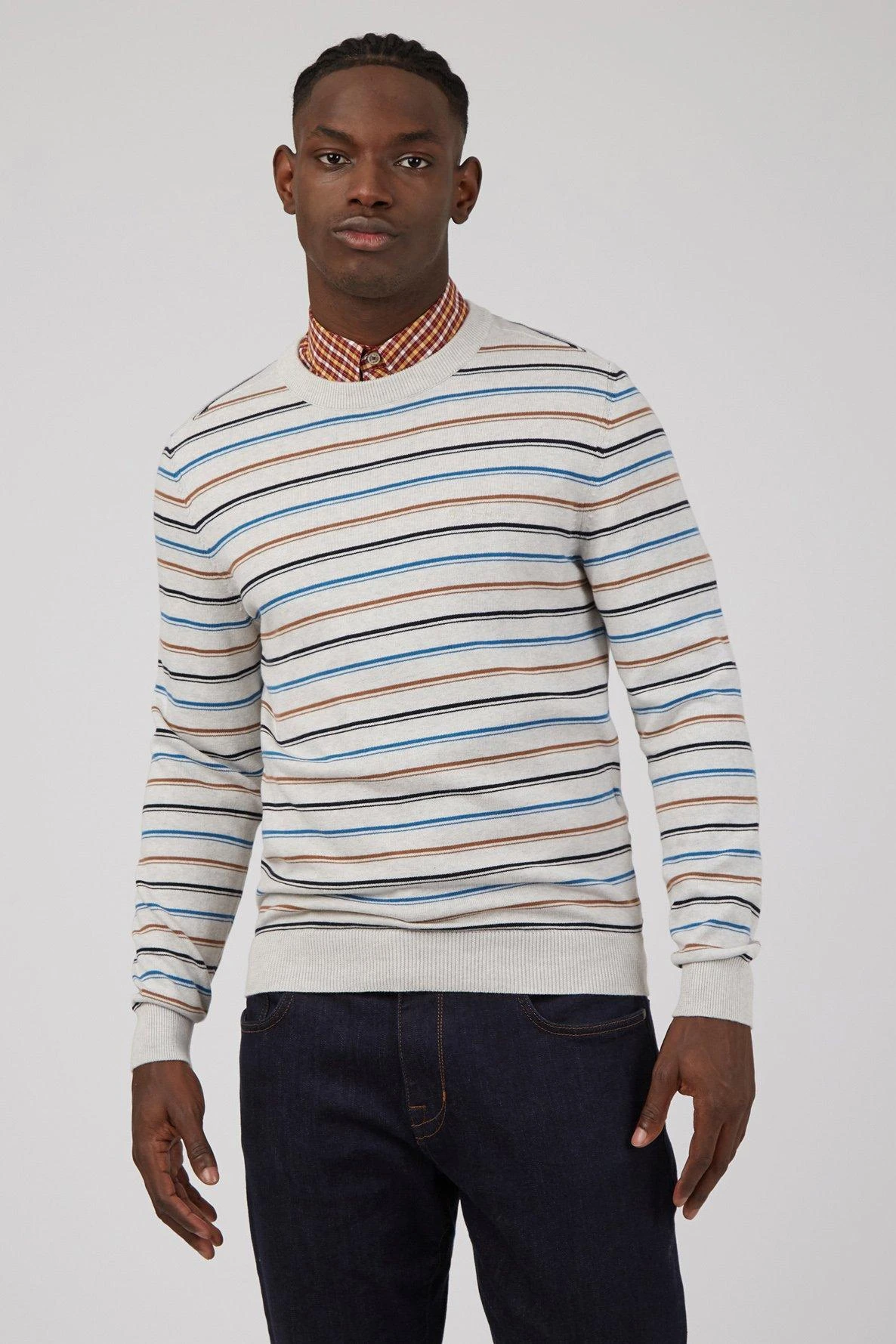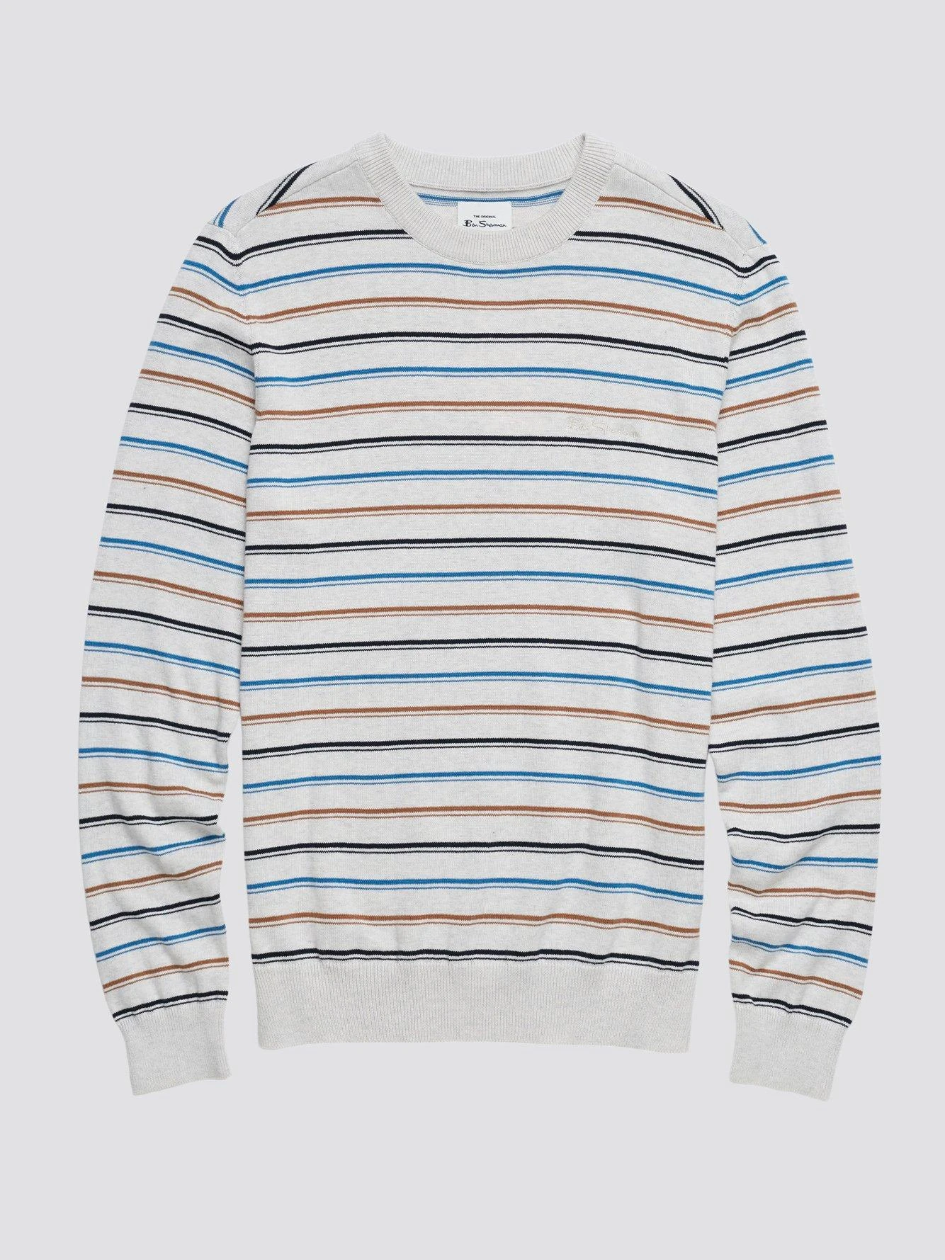 Fine Stripe Crew by Ben Sherman. Striped cotton crew neck designed with fine contrast stripes running throughout. The design stands out on this piece, with subtle branding in the form of a tonal Ben Sherman signature embroidery to the chest.