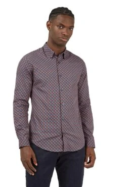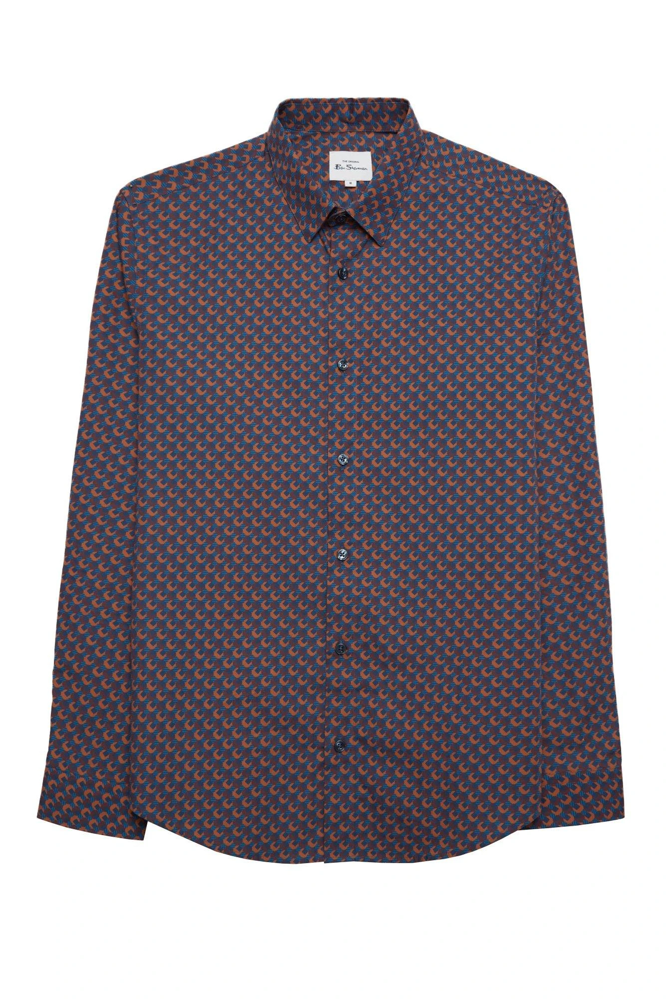 A long sleeve retro casual shirt by Ben Sherman. Designed with a 70s inspired geo print and features a classic concealed button down collar and a slim fit. Wear with denim jeans for a smart casual winter look.