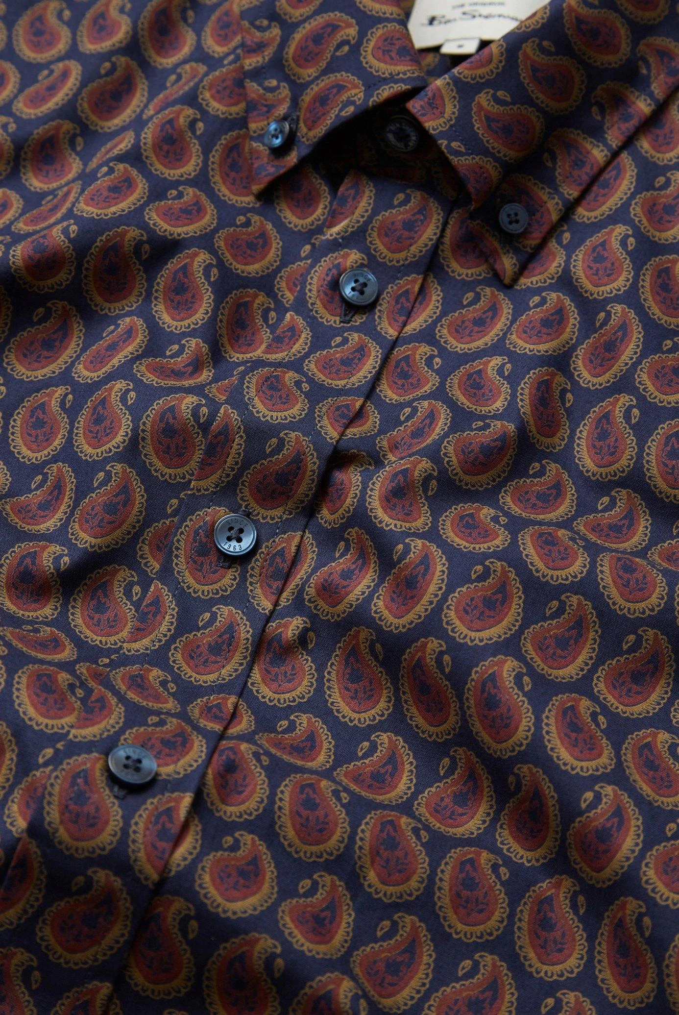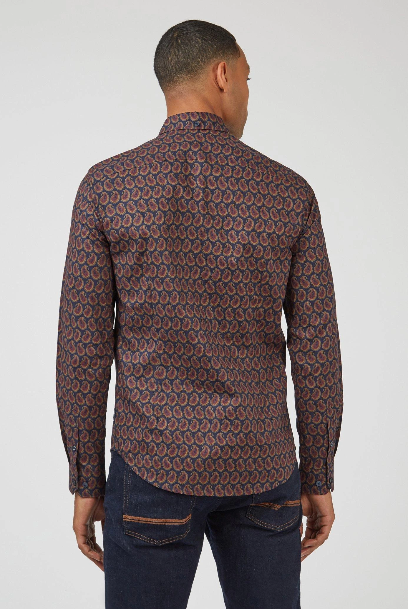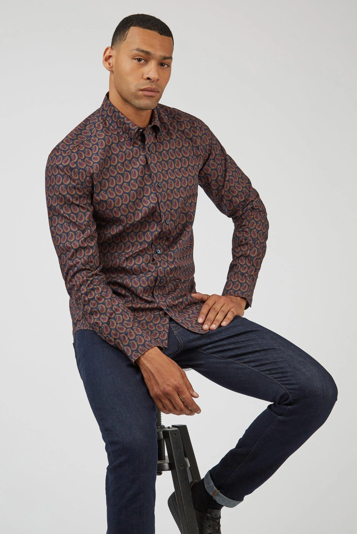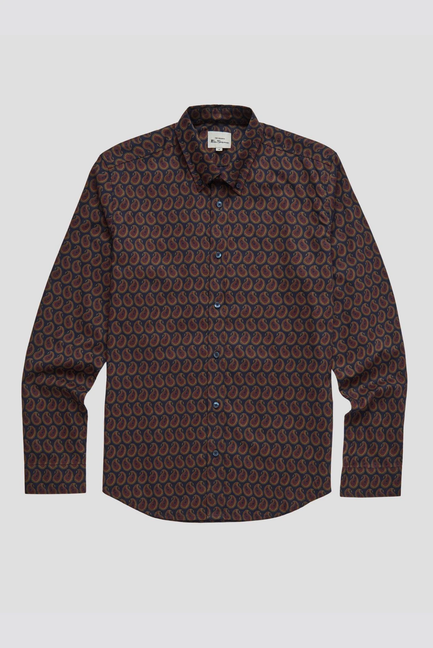 Paisley Print Shirt by Ben Sherman. This Ben Sherman paisley print long sleeve shirt comes in a slim fit and features a 2 finger down collar. Made from 100% Cotton.
