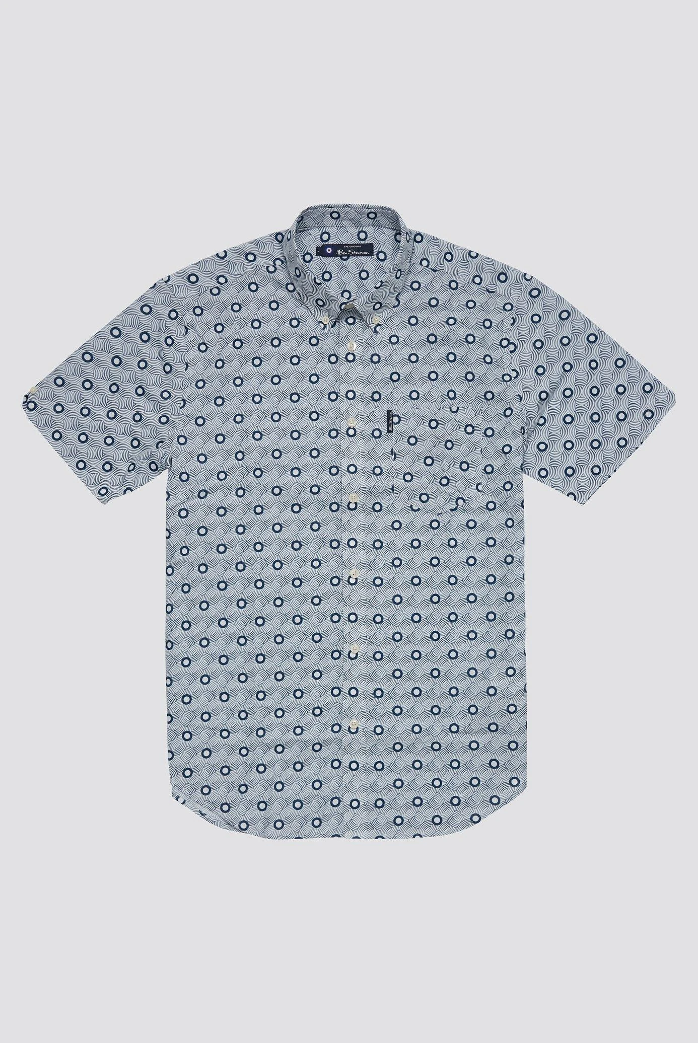 Retro Print Shirt by Ben Sherman. A classic, short sleeved shirt by Ben Sherman, with an allover linear print inspired by retro wallpaper design. With a two finger button down collar, premium cotton fabric and short sleeves, this men’s retro print shirt is an essential for any wardrobe. A classic from the original mod brand, est 1963.
