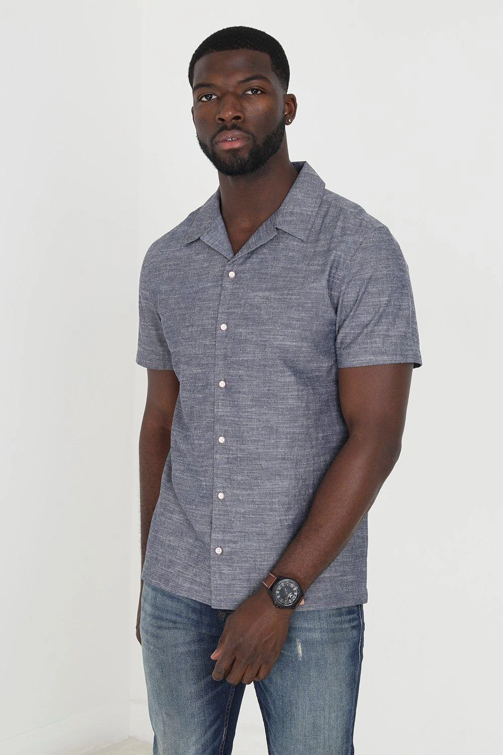 Introducing the Brave Soul short sleeve shirt, designed for the modern man who values style and comfort. Crafted from 100% cotton chambray, this shirt offers a soft and breathable feel. Featuring a revere collar, the regular fit ensures a relaxed yet stylish look. This shirt is a versatile addition to any wardrobe. Team with cargo trousers to complete the look.