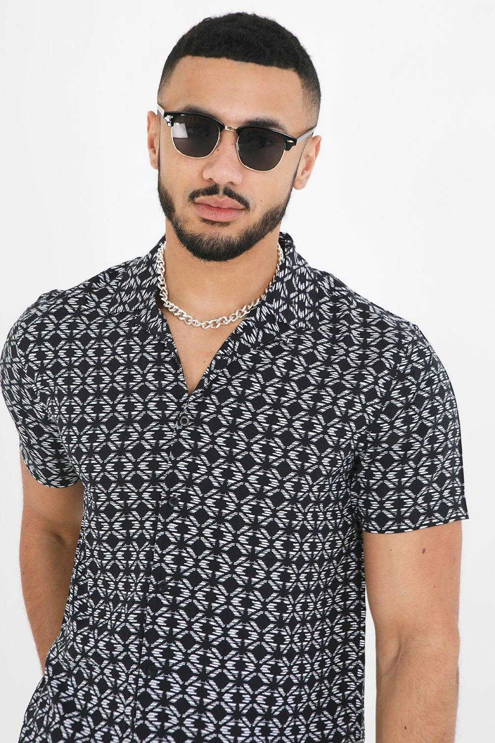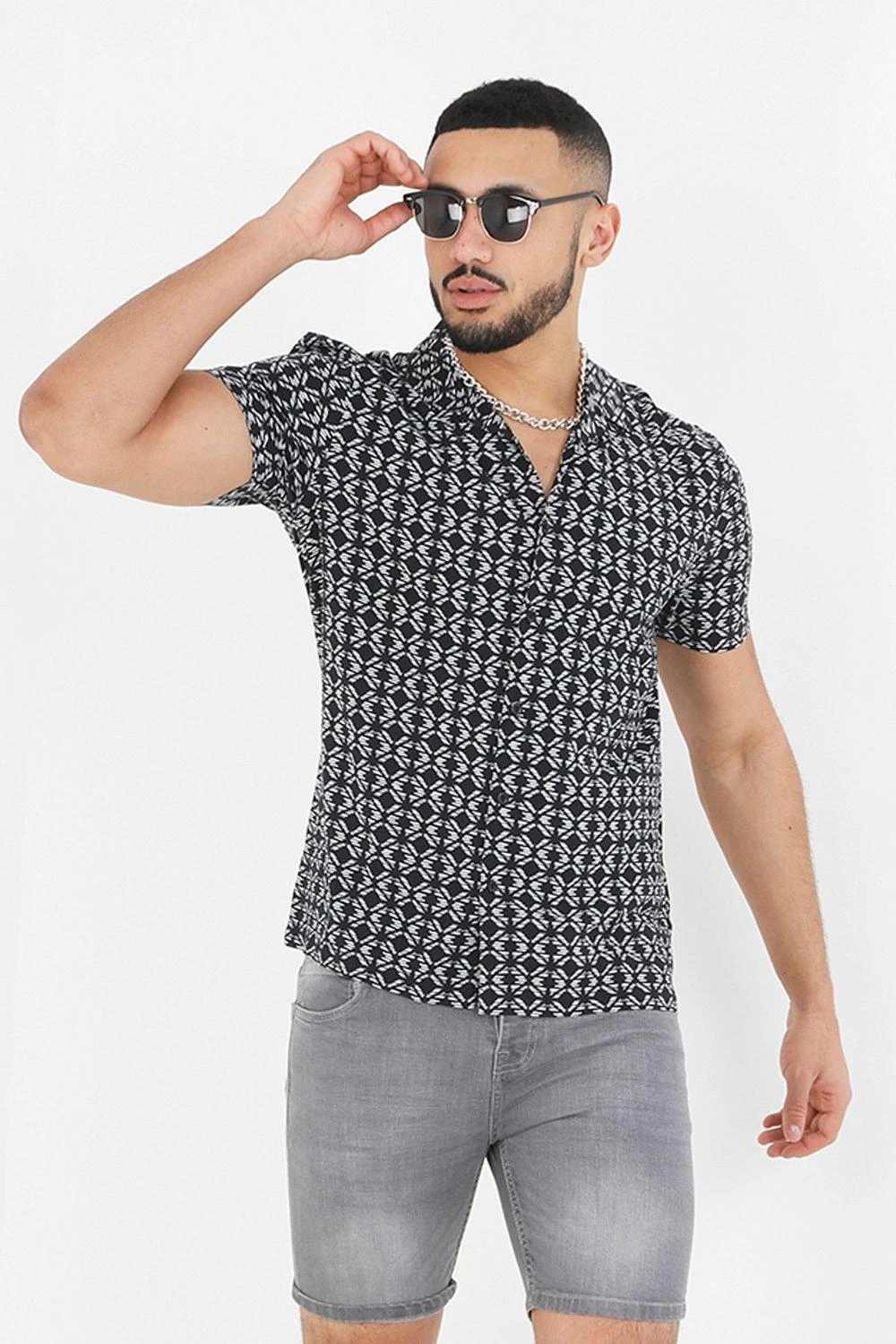 Make a statement with this Brave Soul short sleeve shirt, featuring an eye-catching all-over monochrome geometric print that’s sure to turn heads. It has a classic revere collar and is cut in a regular fit. Dress it up or down, the perfect addition to your wardrobe.