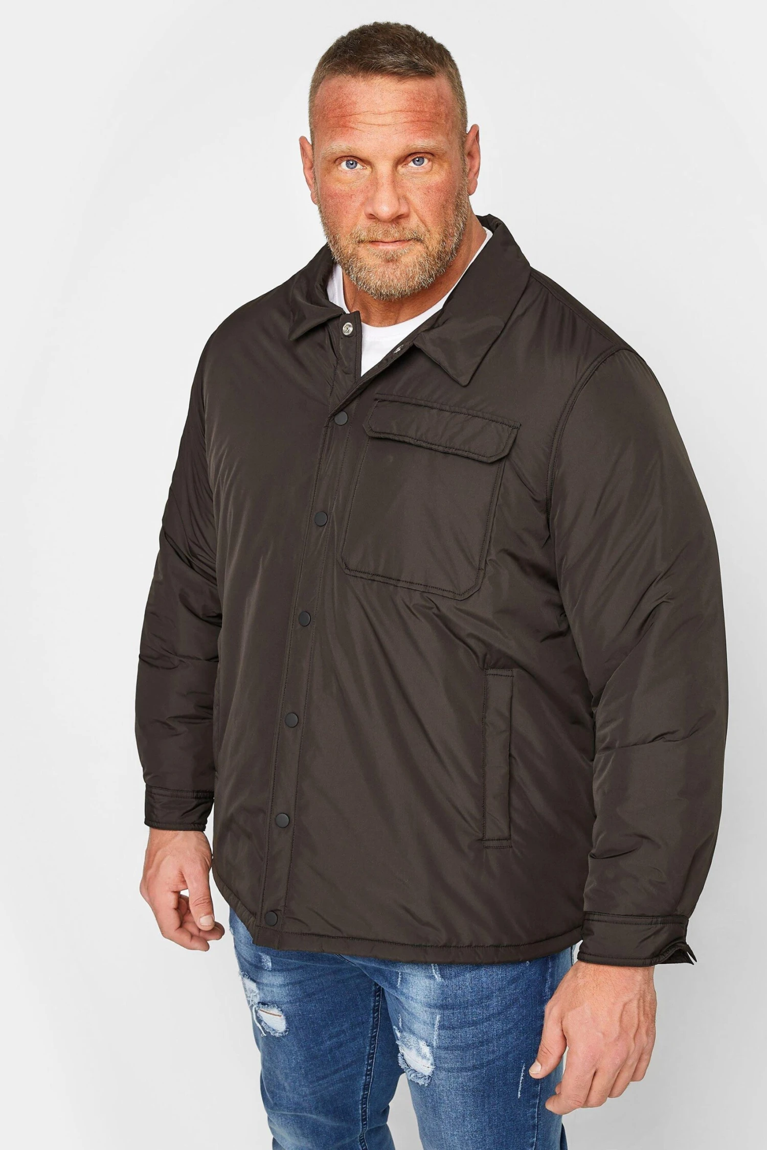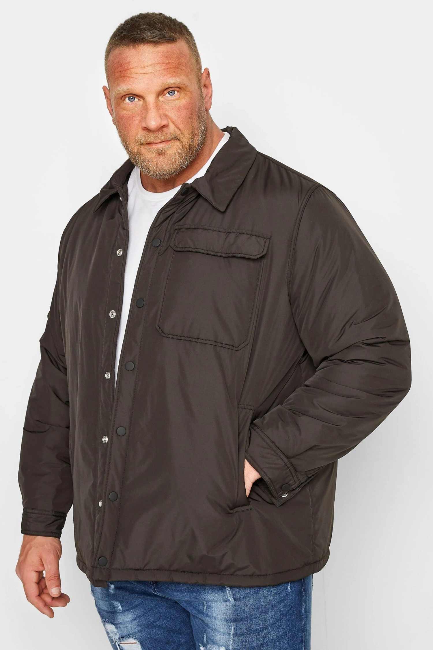 A must have light layer Made from a comfortable woven fabric this jacket features long sleeves, a classic collar, a chest pocket, and a button-down style. Wear with jeans and trainers for an easy everyday outfit