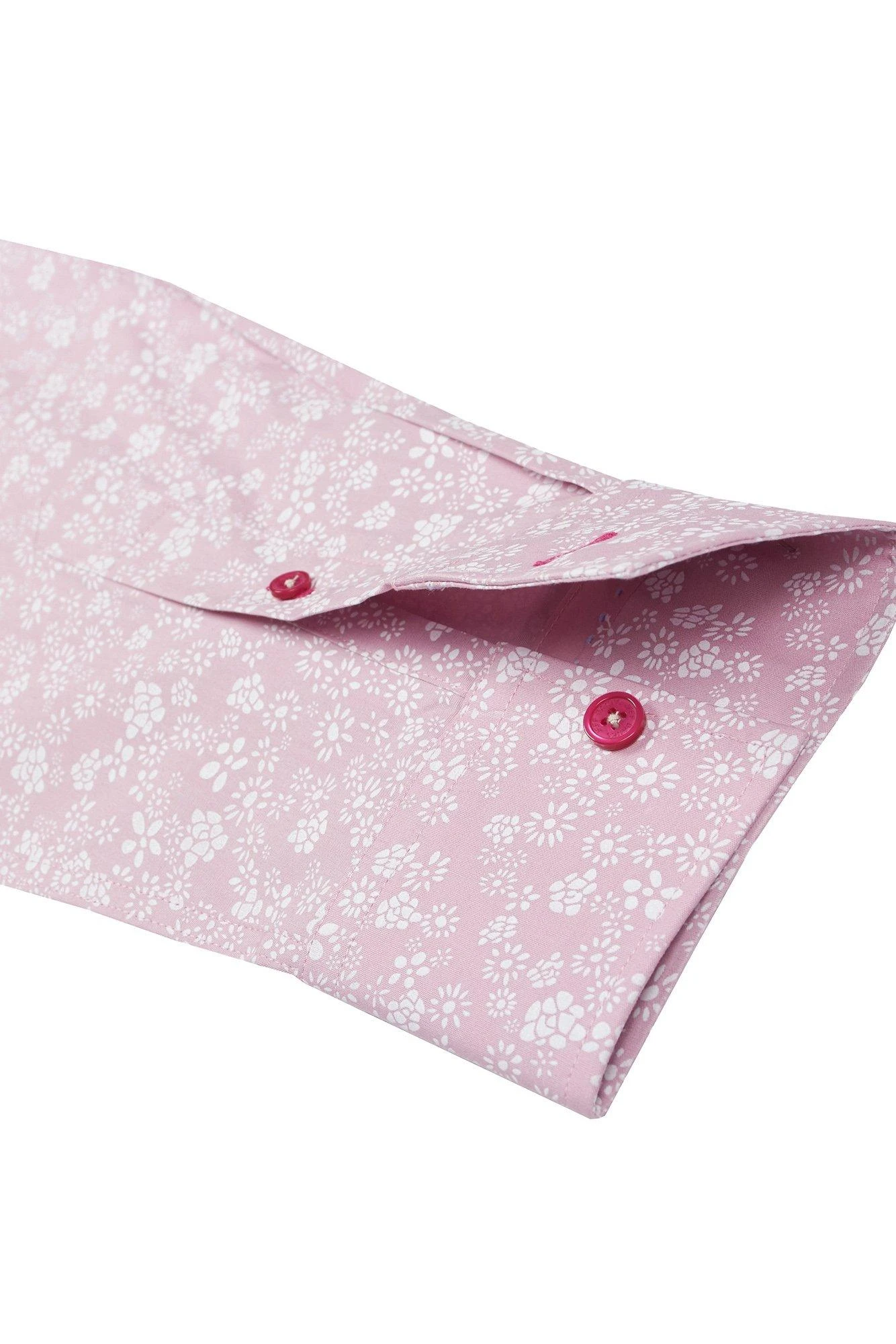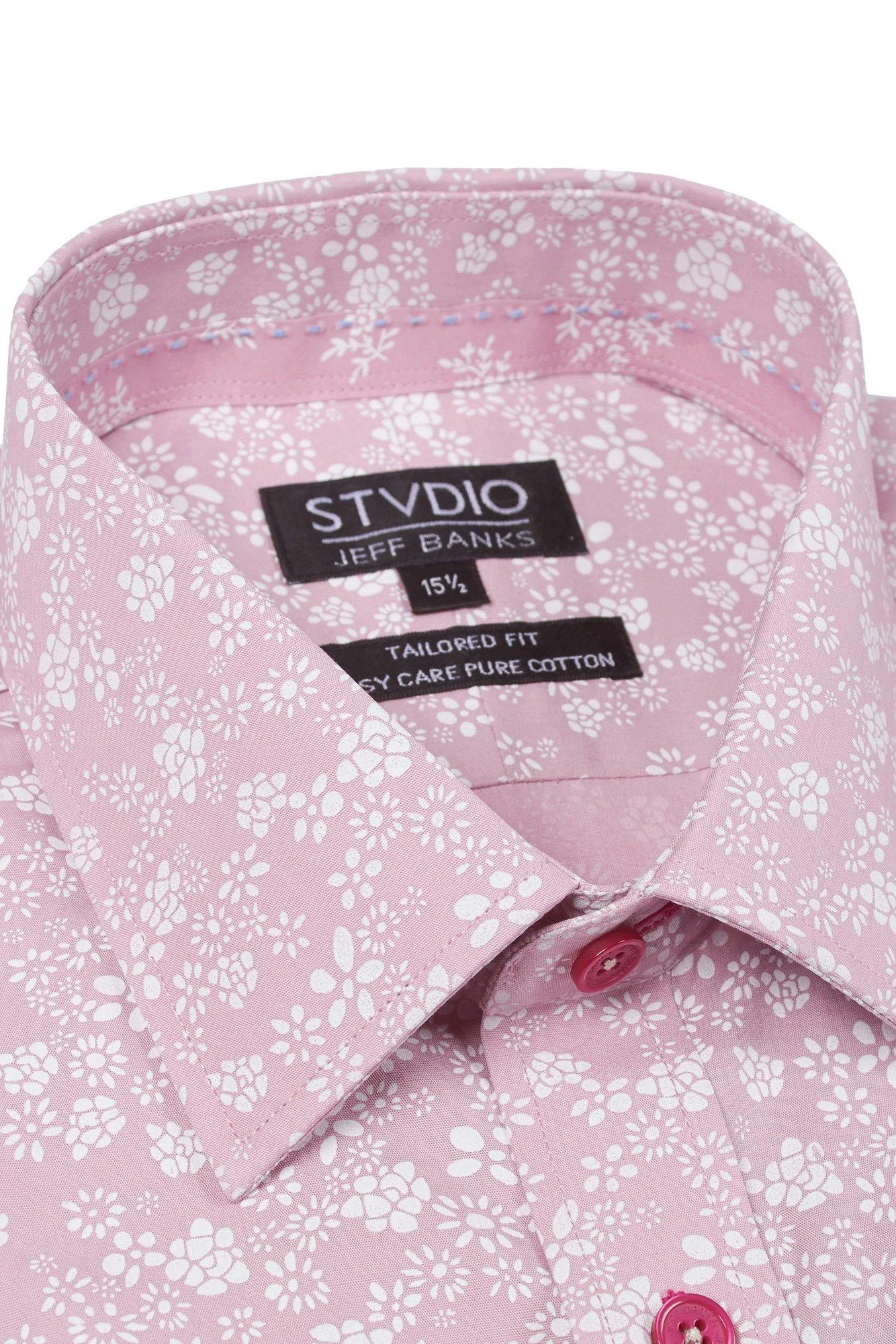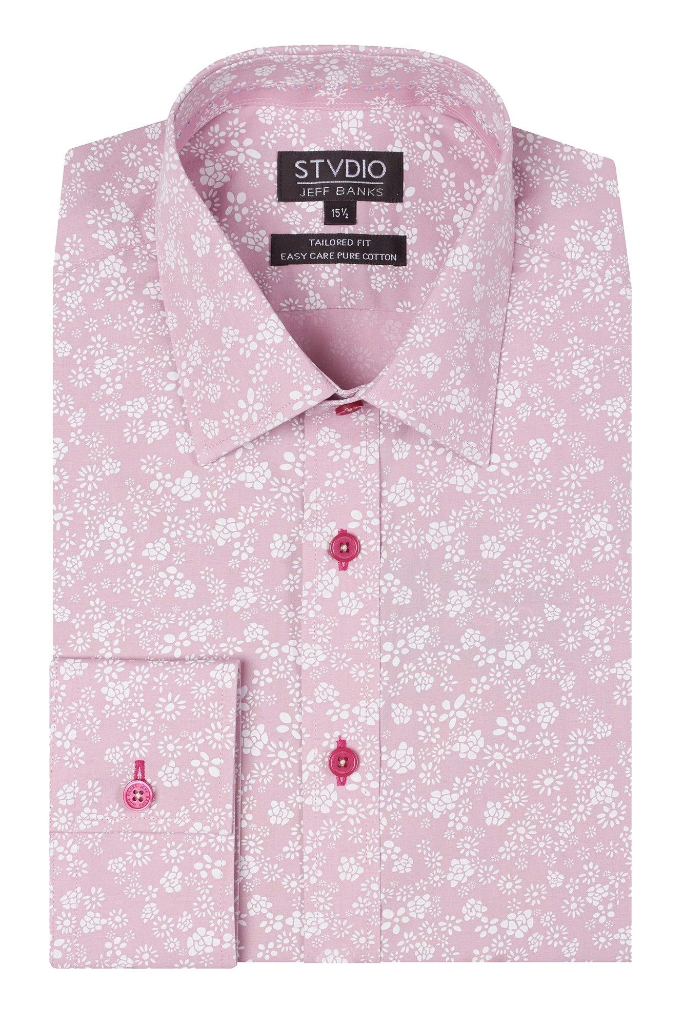 Cotton floral print formal shirt from Stvdio by Jeff Banks. Constructed in a tailored fit, this pink floral shirt features single cuffs and a half-cutaway collar, with contrast fabric to the back of the neck and Jeff Banks’s classic stab stitch detailing. The perfect piece for your office run or leisure – wear with your favourite Jeff Banks denim or smart suit trousers.