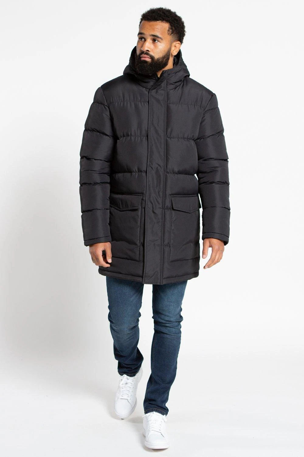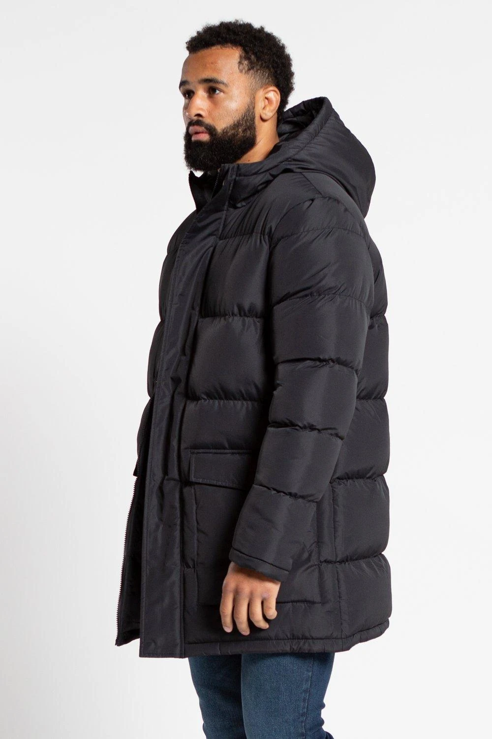 This longline, parka puffer jacket from French Connection is perfect for keeping warm. Features fixed hood, high collar, zip and stud fastening, French Connection branding logo, two front pockets with stud fastening and one inside pocket.