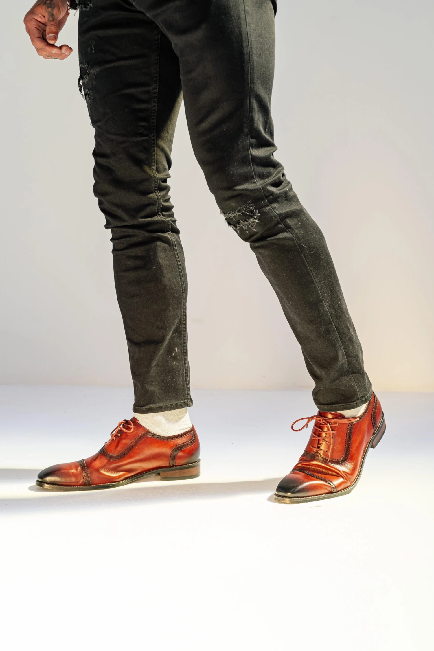 A Classic shoe in premium Burgundy Leather, features an elegant timeless shape, the tonal patina detail around the toe cap and heel provides an elegance that exudes a classic English styling. The perfect choice for smart, executive footwear.
