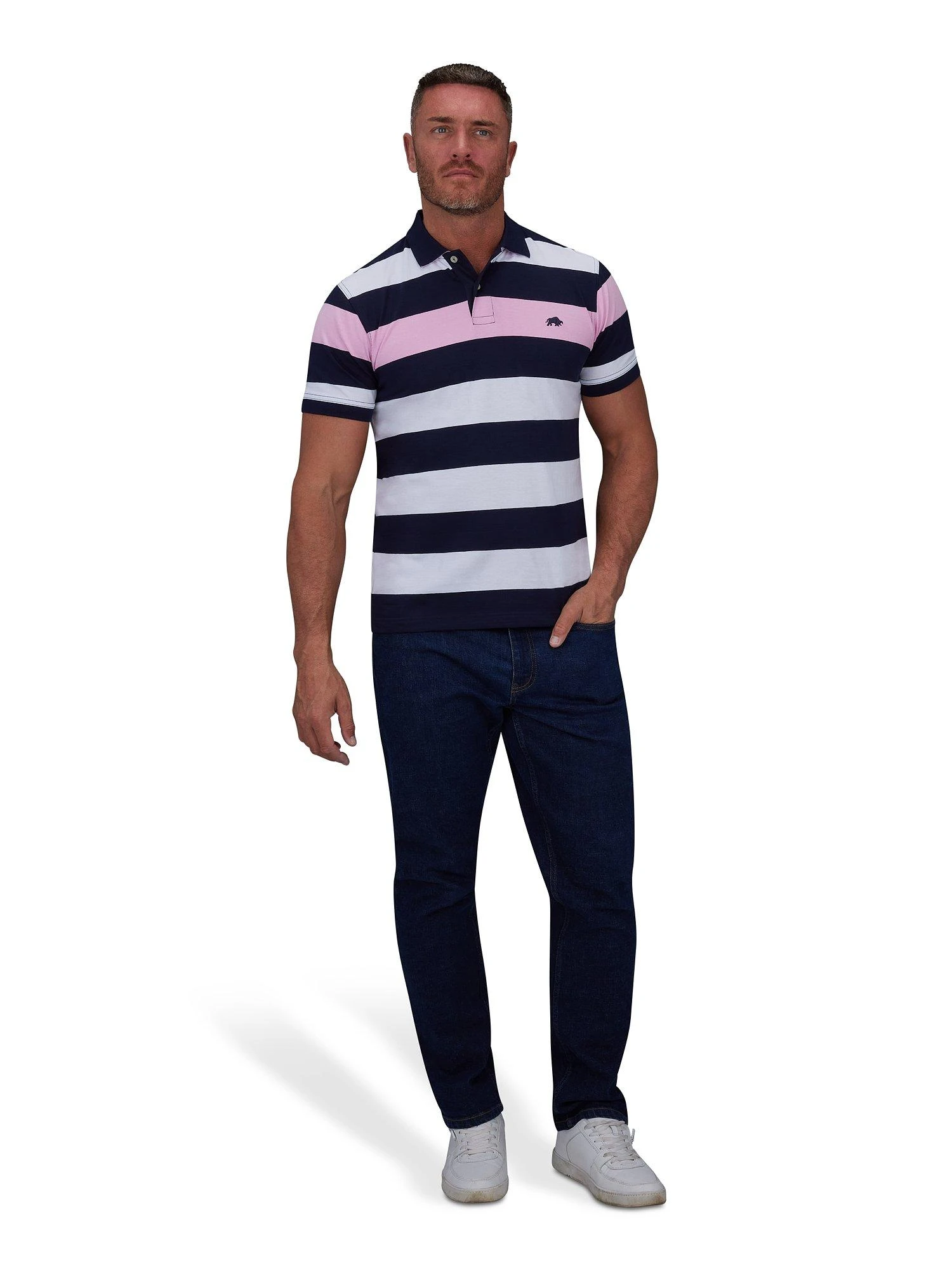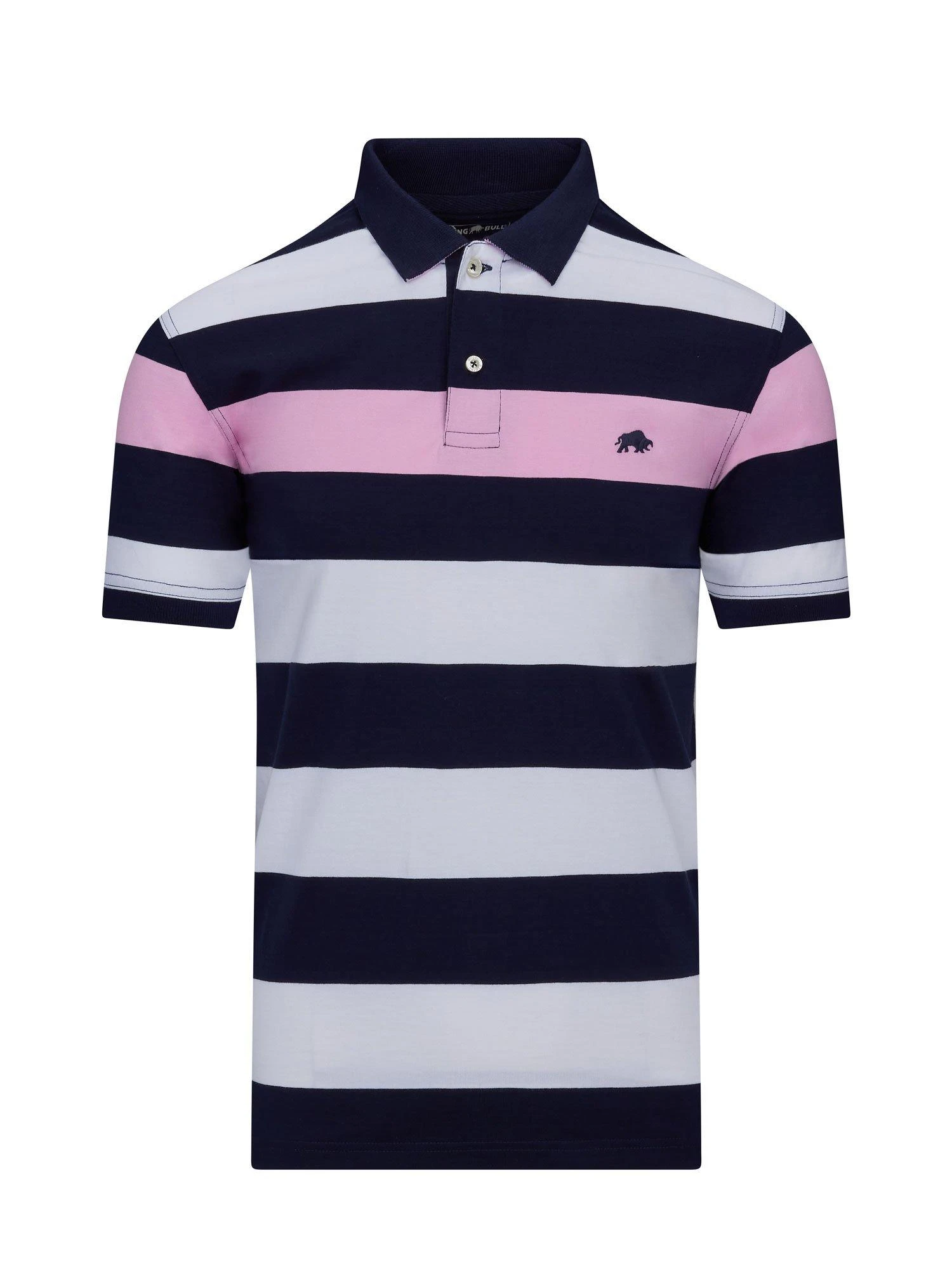 Be more bold with a Striped Jersey Polo this season. With a burst of bright colour, this comfy polo is perfect with your summer shorts just as much as those well worn jeans. Iconic bull logo at the chest.