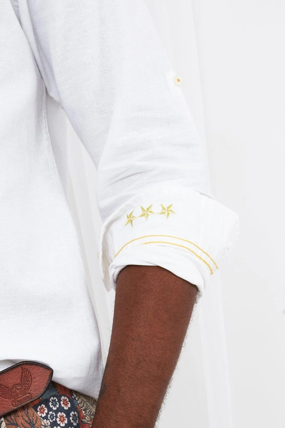 This linen blend shirt will take you from beach to bar. Available in white or brilliant red, with subtle contrasting stars on the cuffs, it’s bound to make a statement. Just use the tab to keep the sleeves rolled up for a more laid-back look, or add chinos for a smarter style.