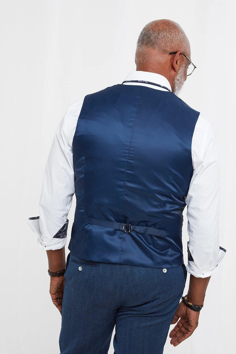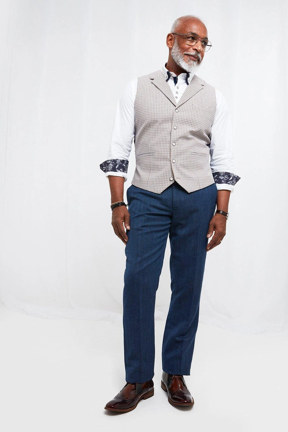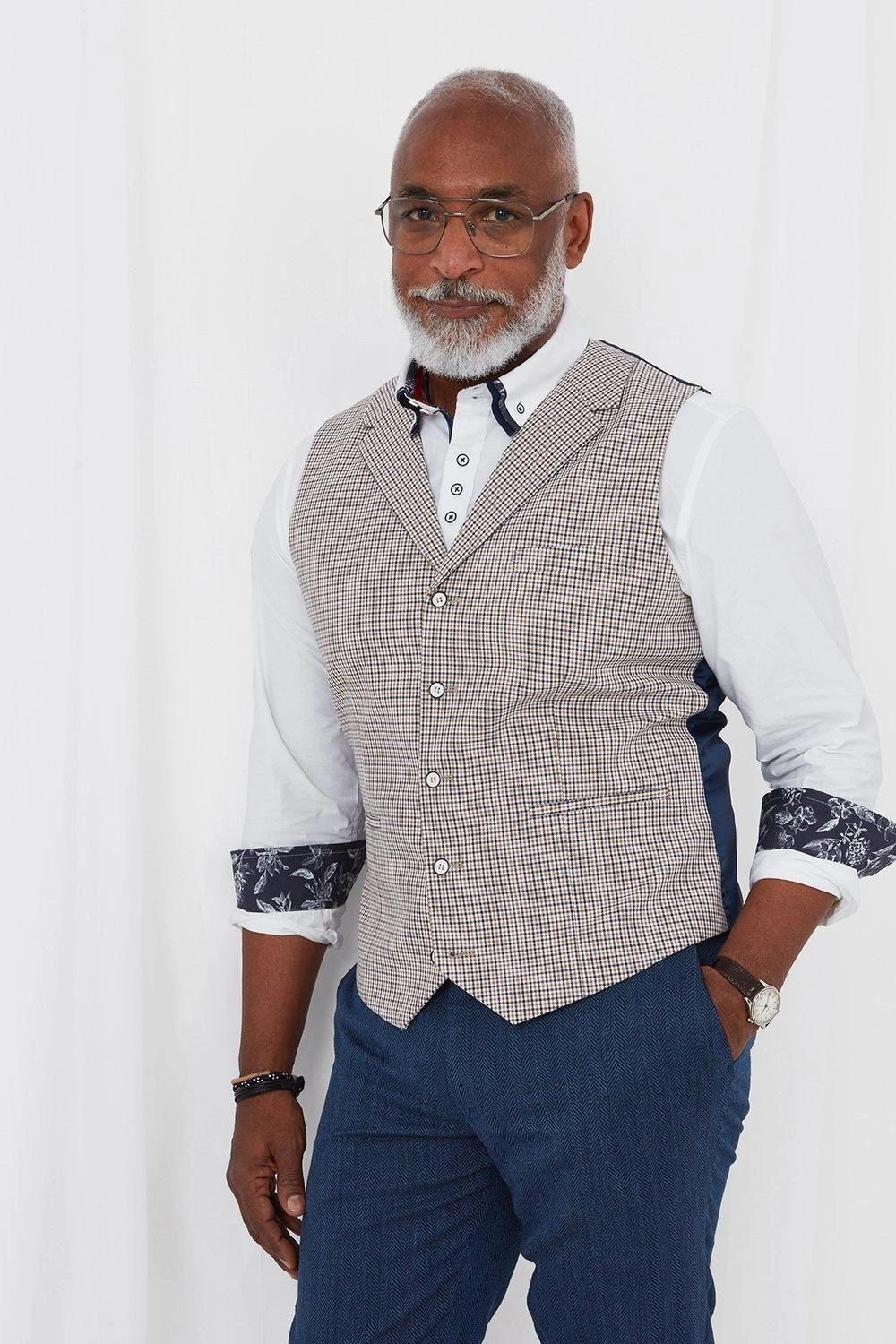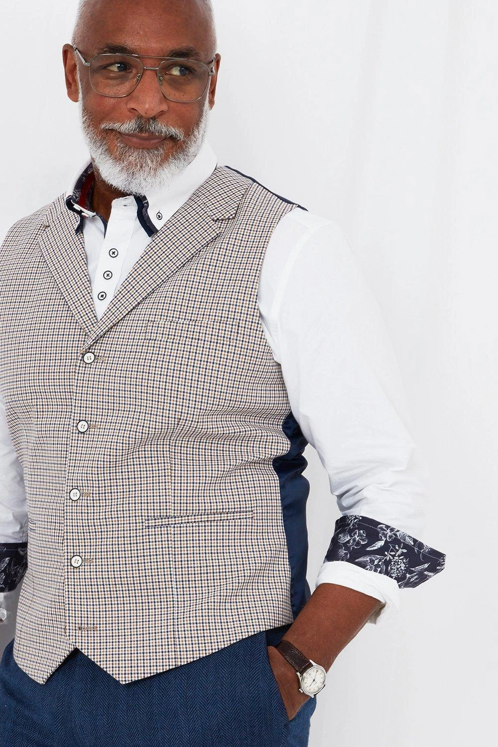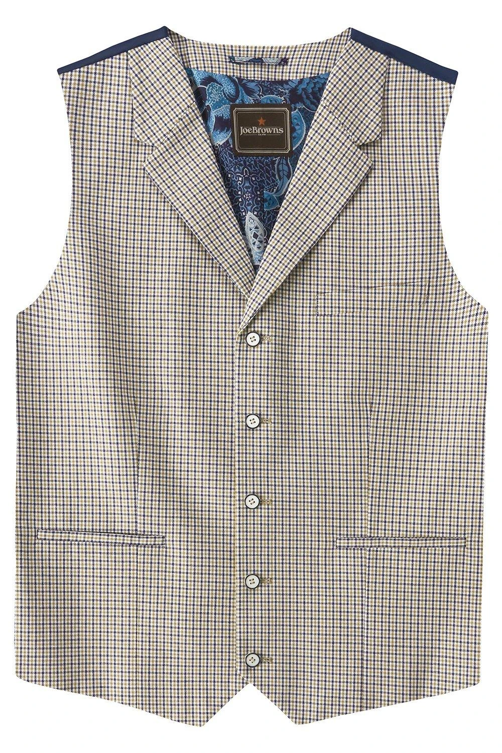 Houndstooth checks will always look sharp, which is why we added them to this dapper waistcoat. It’s the two-tone buttons and winning colours that make this style unique, though – the blue lines really pop against the neutral tones, creating a bold point of interest. A real summer essential, this piece looks great on its own or teamed with one of our blazers.