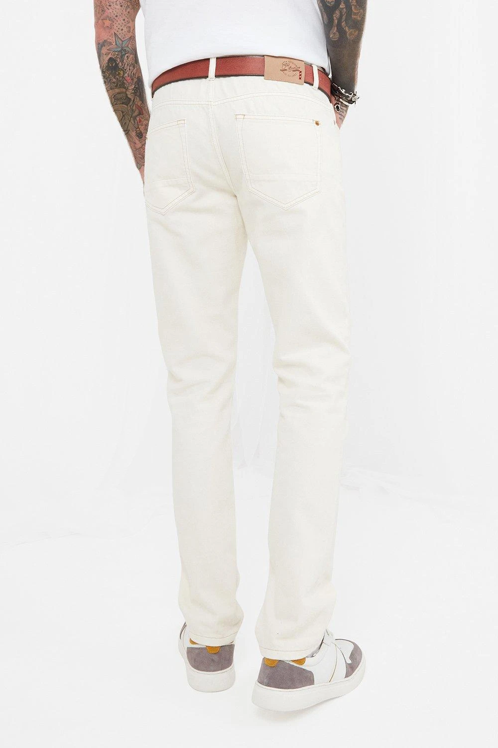 These slim fit jeans are the ultimate base for any fresh summer look. It’s the premium denim and sharp cream colour that make them perfect for any outfit, whether you’re adding a graphic tee and trainers or a shirt and boots. Bang on trend with subtle pops of colour in the stitching, you’ll look seriously dapper stepping out in these jeans.
