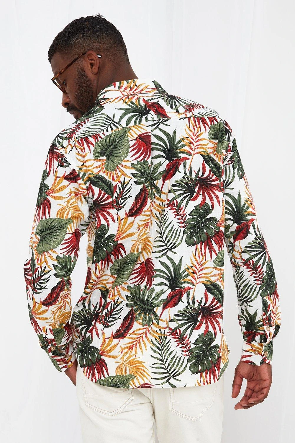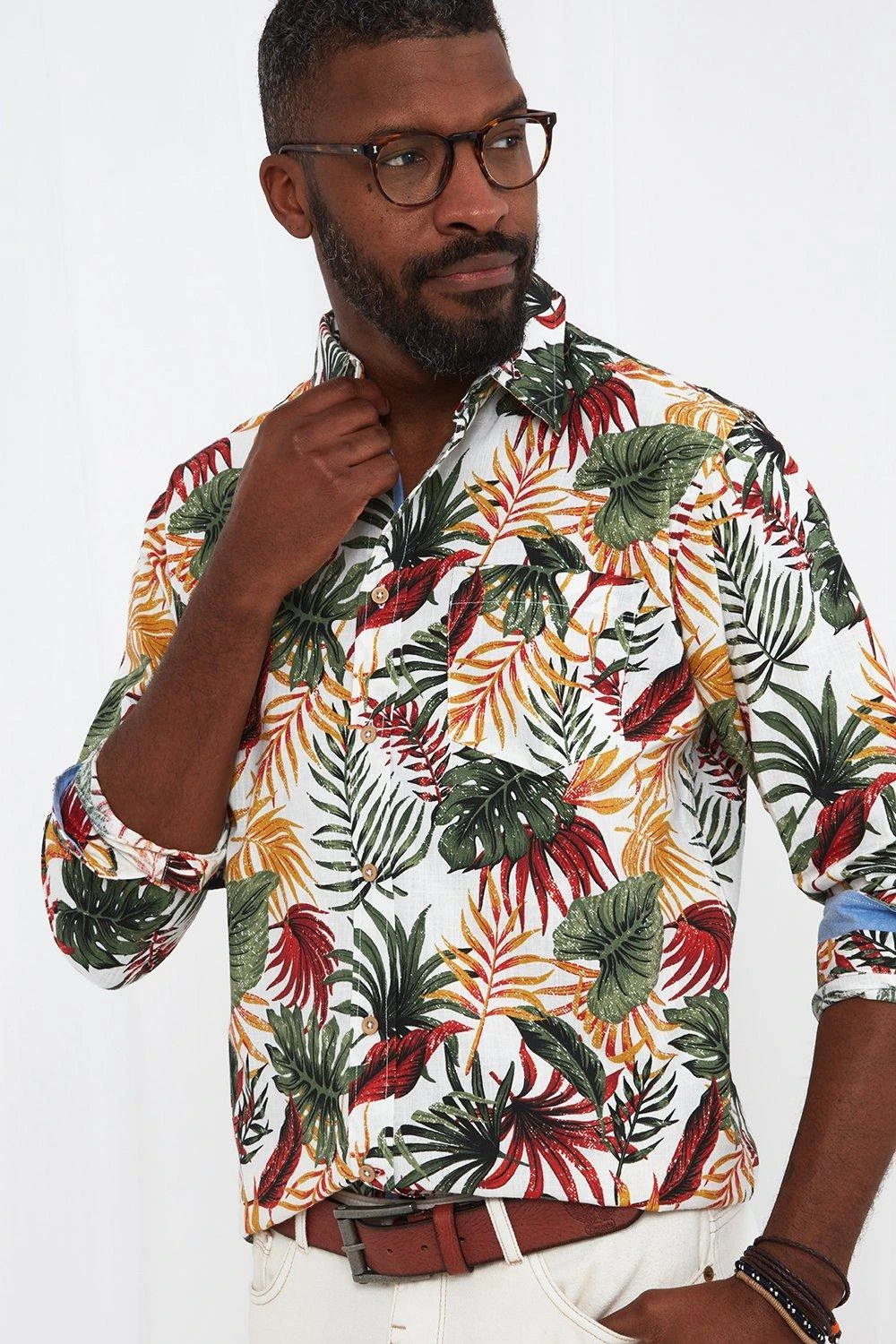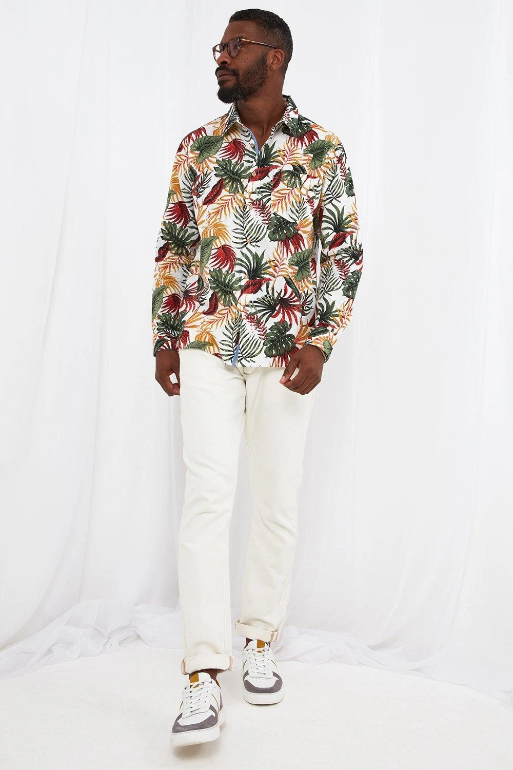 We crafted this long-sleeved shirt inspired by our latest trip to Ibiza. Made in a linen-based fabric with a bold, tropical print, it’s cool, comfortable and bursting with summer fun. Teamed with your favourite jeans or shorts, you’ll have everything you need to create a standout seaonsal look.