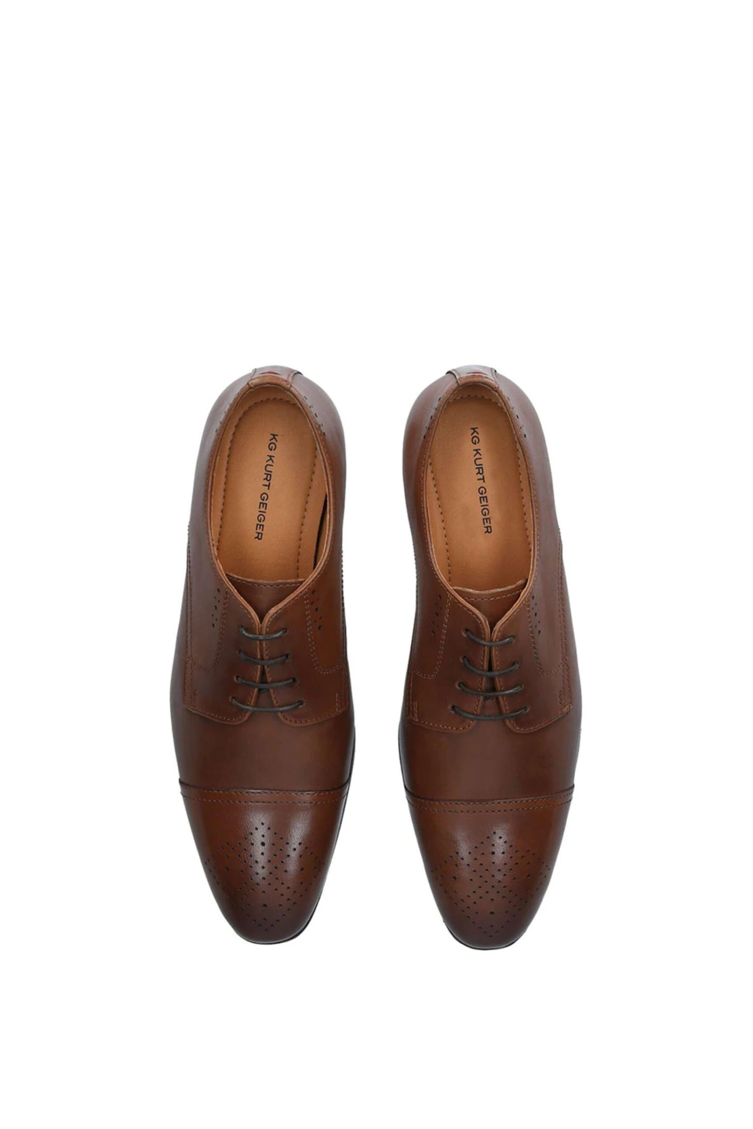 Add the final touch to a formal look with the ORTON lace up brogues from KG Kurt Geiger. This formal style features a tan leather structured upper with brogue detailing, rounded toe and invisible eyelets. The low brown heel is solidly built for longevity.