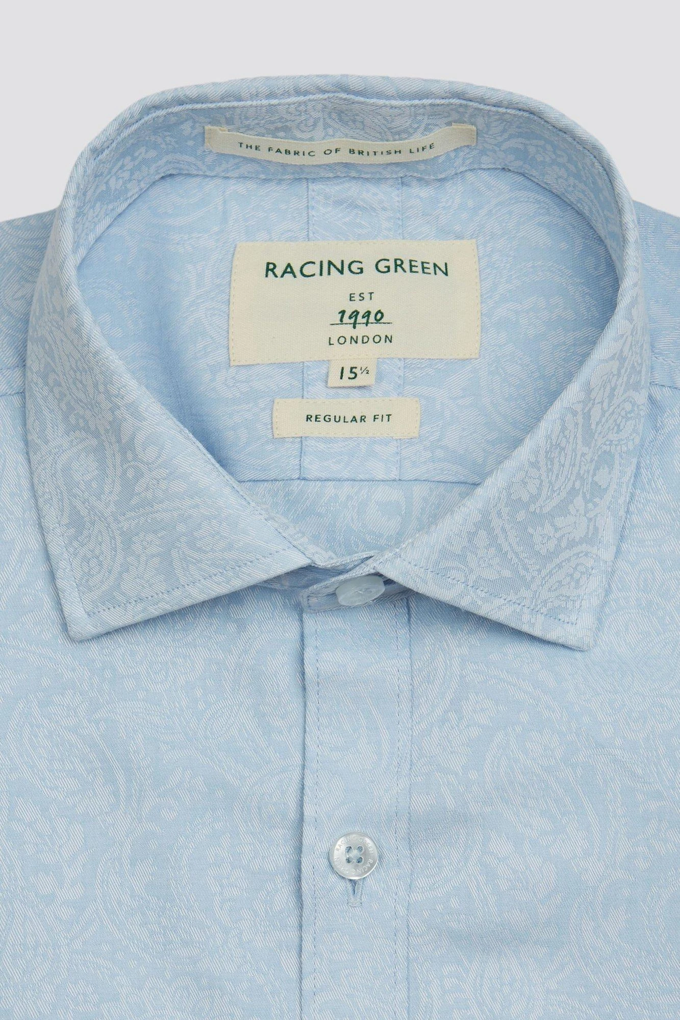 Paisley Regular Fit Shirt by Racing Green. Constructed with a classic button up front, this shirt features a cut away collar and double cuffs, perfect for accessorising with cufflinks if desired. The ideal piece for office wear or leisure. The Racing Green shirt collection is based upon performance. Durability, comfort and stylish cuts make the name a legend in contemporary formalwear.