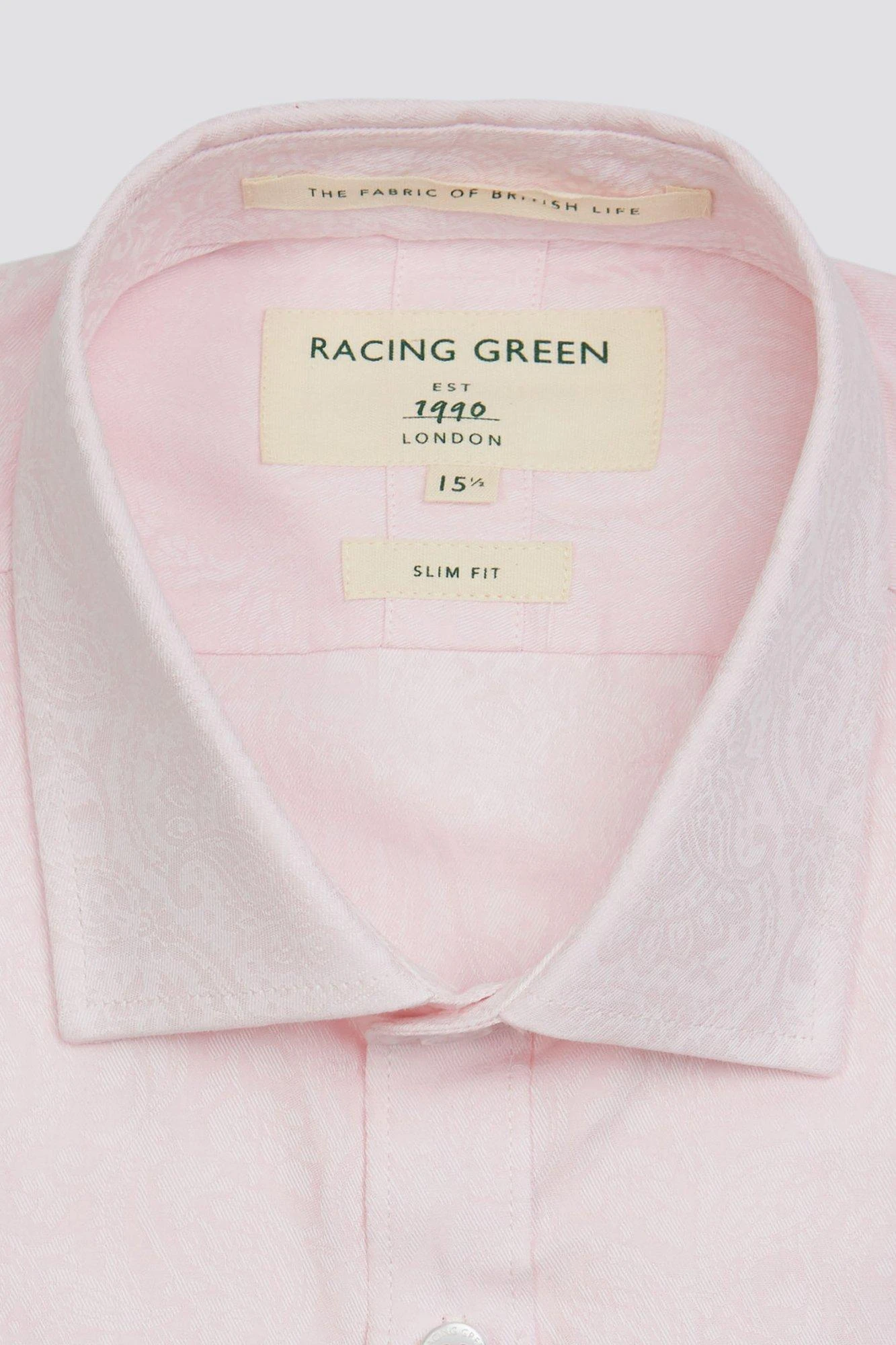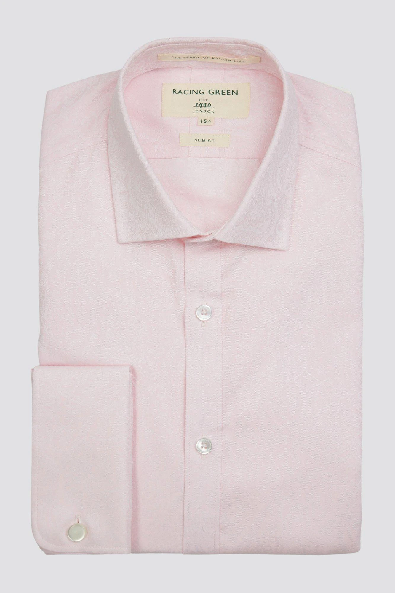 Paisley Slim Fit Shirt by Racing Green. Constructed with a classic button up front, this shirt features a cut away collar and double cuffs, perfect for accessorising with cufflinks if desired. The ideal piece for office wear or leisure. The Racing Green shirt collection is based upon performance. Durability, comfort and stylish cuts make the name a legend in contemporary formalwear.