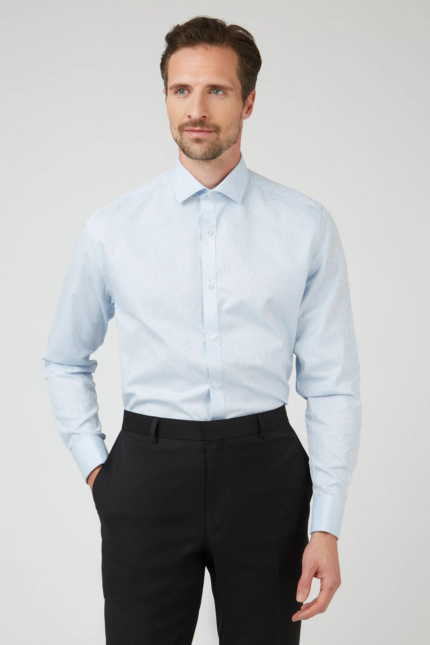 Paisley Tailored Fit Shirt by Racing Green. Constructed with a classic button up front, this shirt features a cutaway collar and double cuffs, perfect for accessorising with cufflinks if desired. The ideal piece for office wear or leisure. The Racing Green shirt collection is based upon performance. Durability, comfort and stylish cuts make the name a legend in contemporary formalwear.