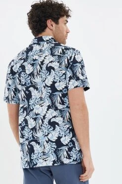 Threadbare ‘Peony’ Short Sleeve Leaf Print Cotton Shirt