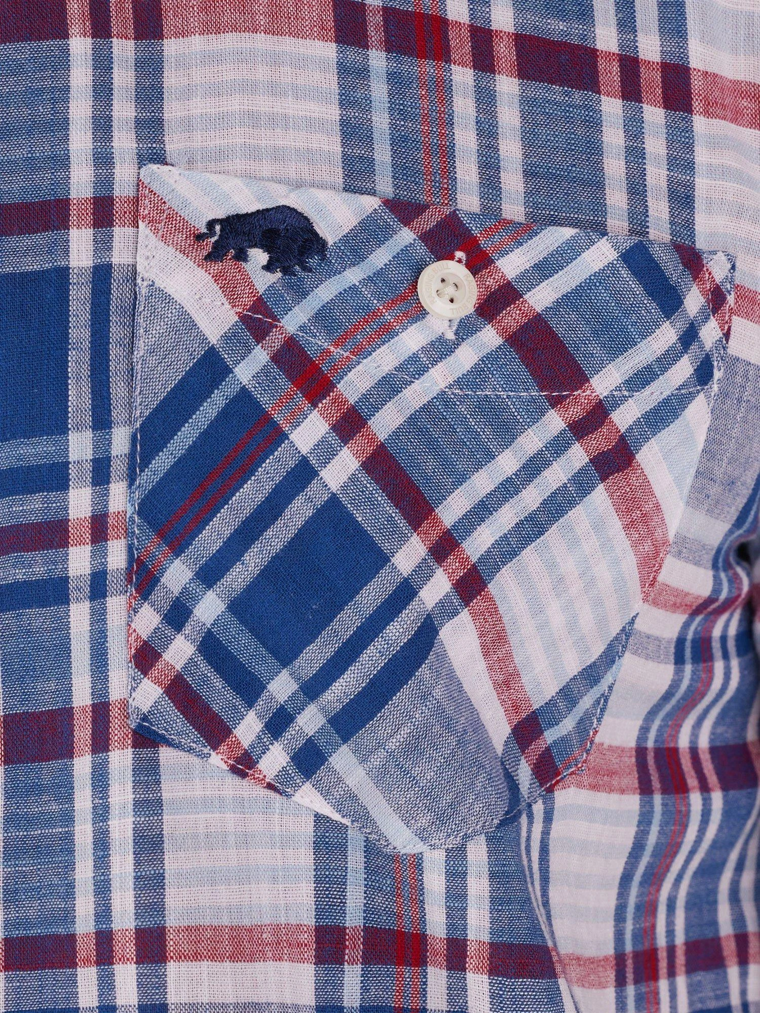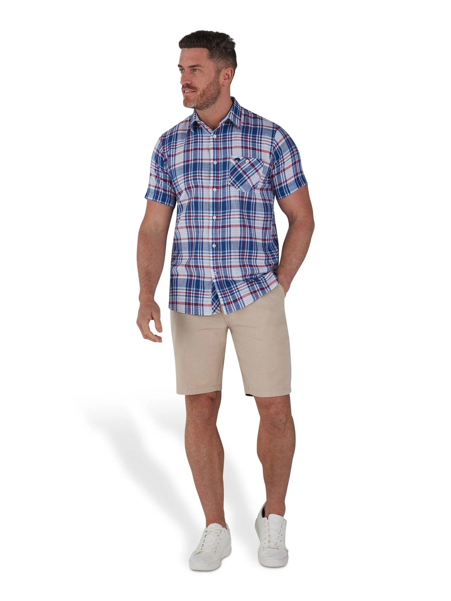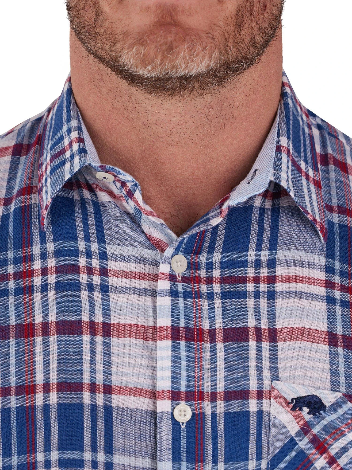 Stay comfy, cool, and classy in a staple check patterned short sleeve shirt. Perfect for those rising temperatures, the linen material leaves you free to enjoy every day. Paired with Raging Bull’s range of shorts, it is the ultimate hot weather combo. Featuring the iconic bull logo to the chest.