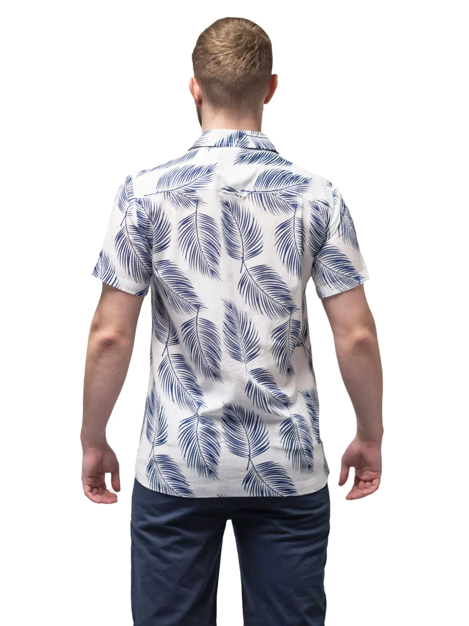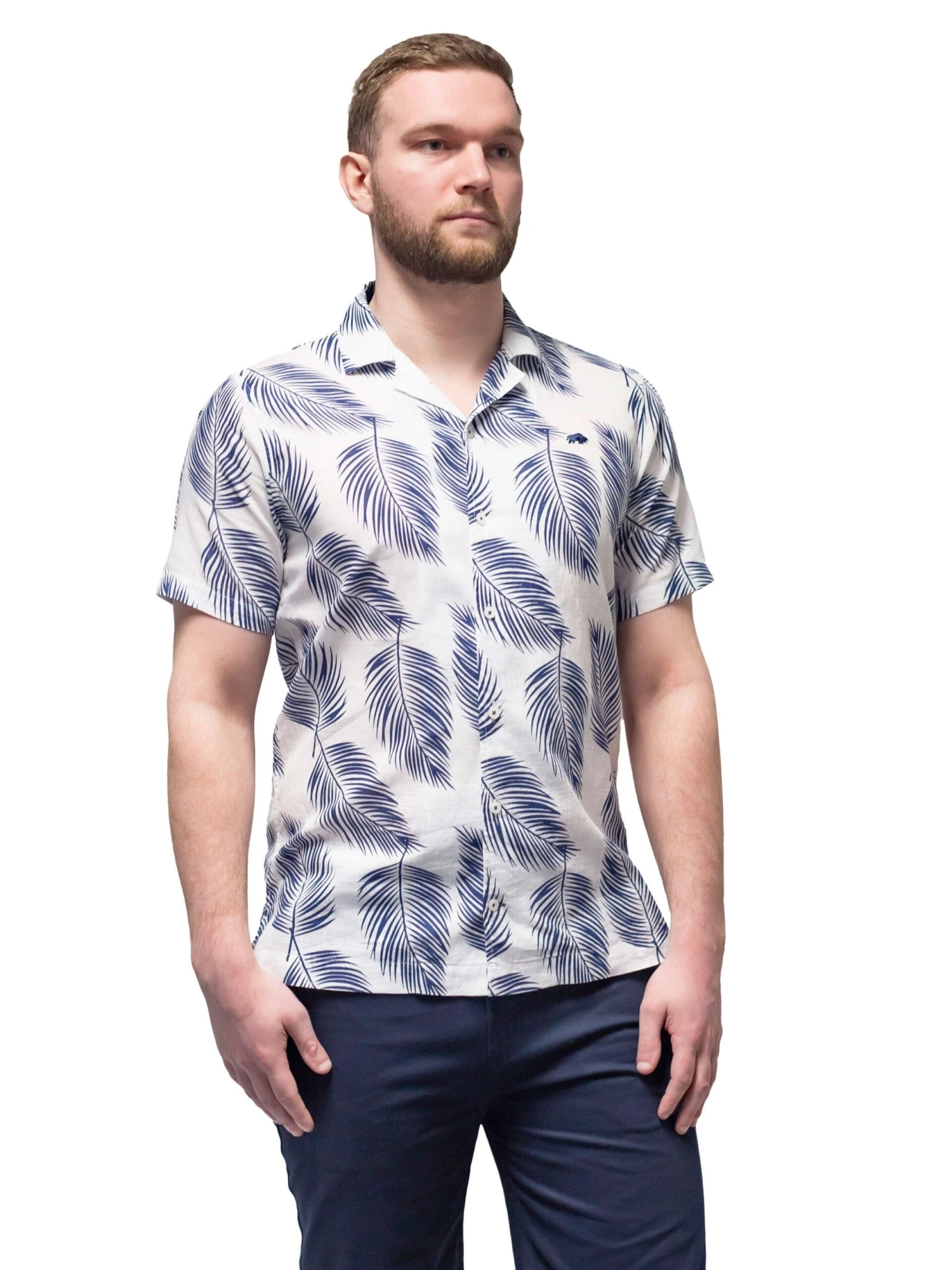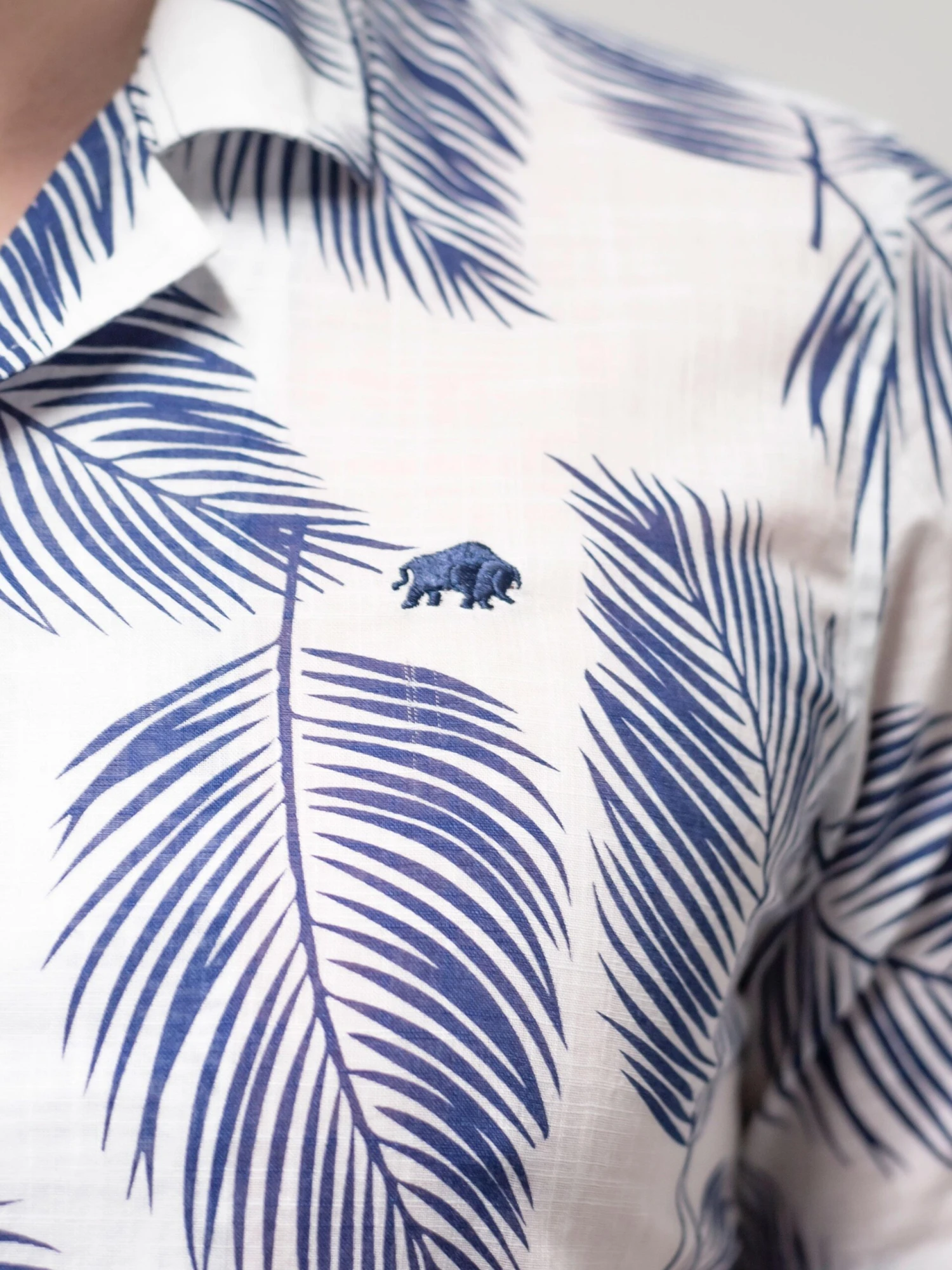 Take a step into bold patterns with a short sleeved, linen, Palm Leaf Shirt. Ideal for dressing up those garden BBQs, pair with some navy chino shorts for a slick summer look. Iconic bull logo on the chest.