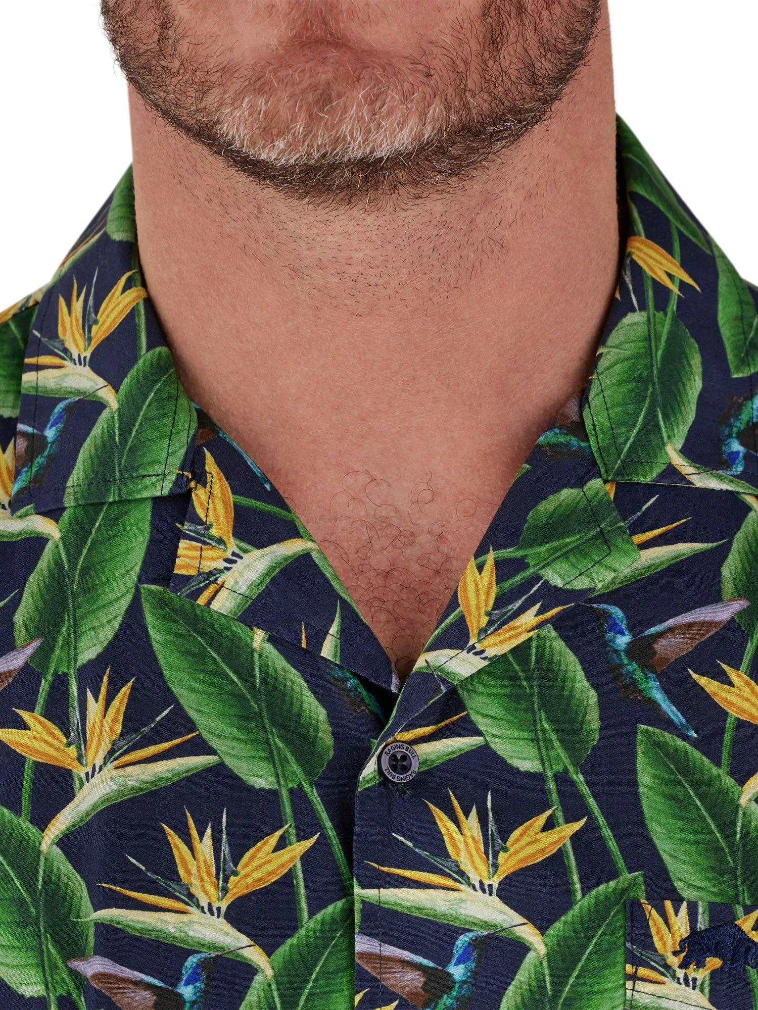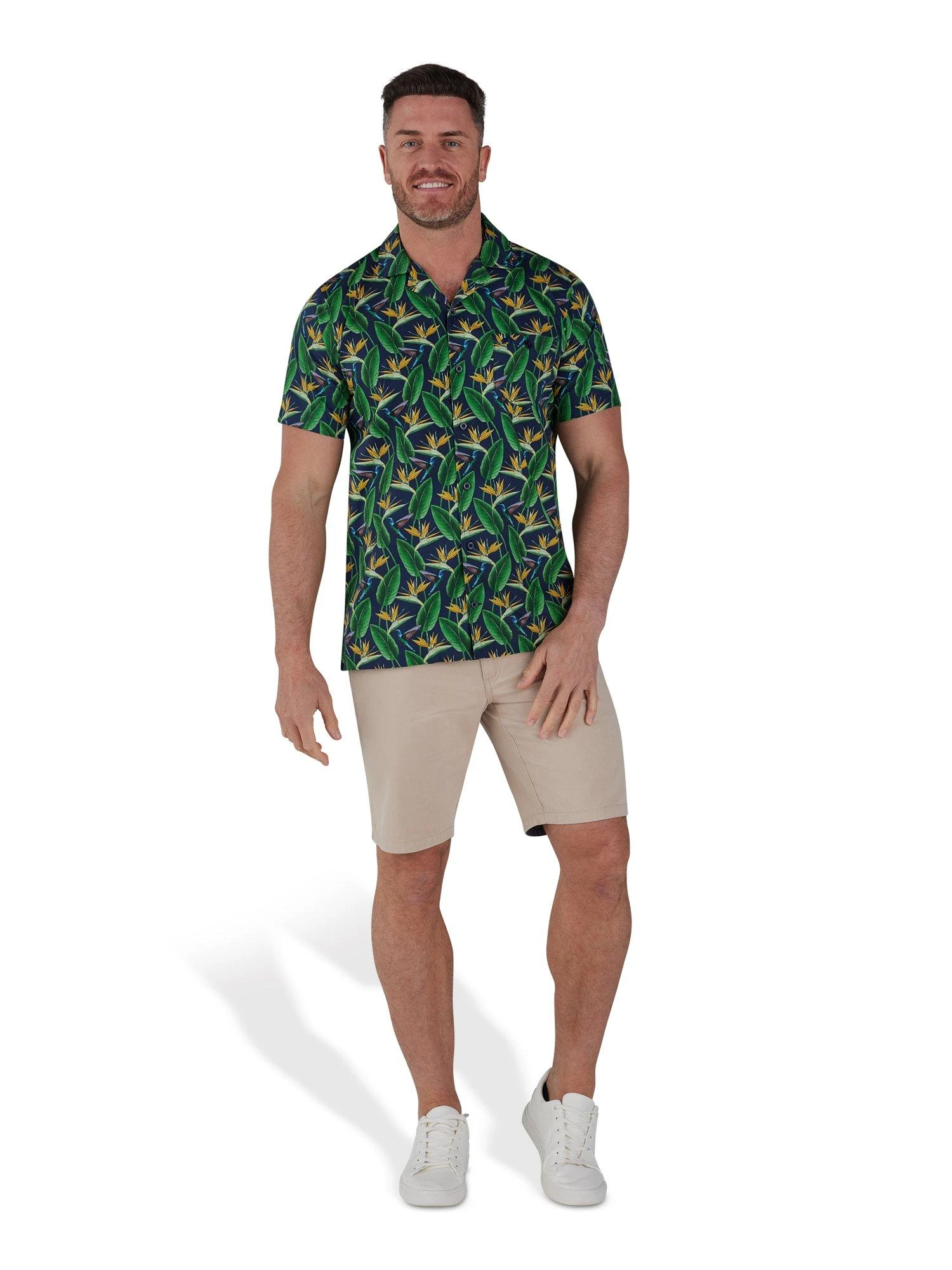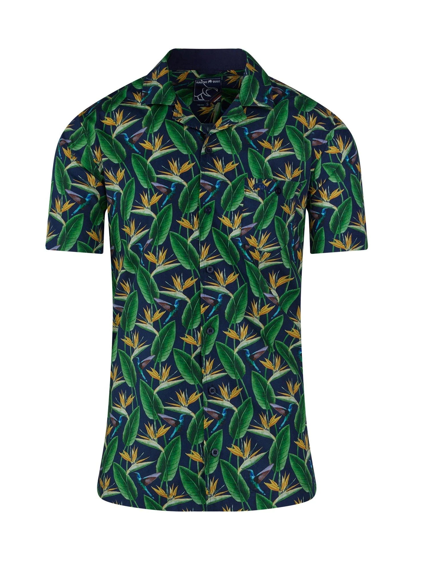 Get adventurous with the bold looks of a tropical poplin shirt. The perfect partner to a pair of chino shorts when the weather heats up. Iconic Bull logo to left of chest.