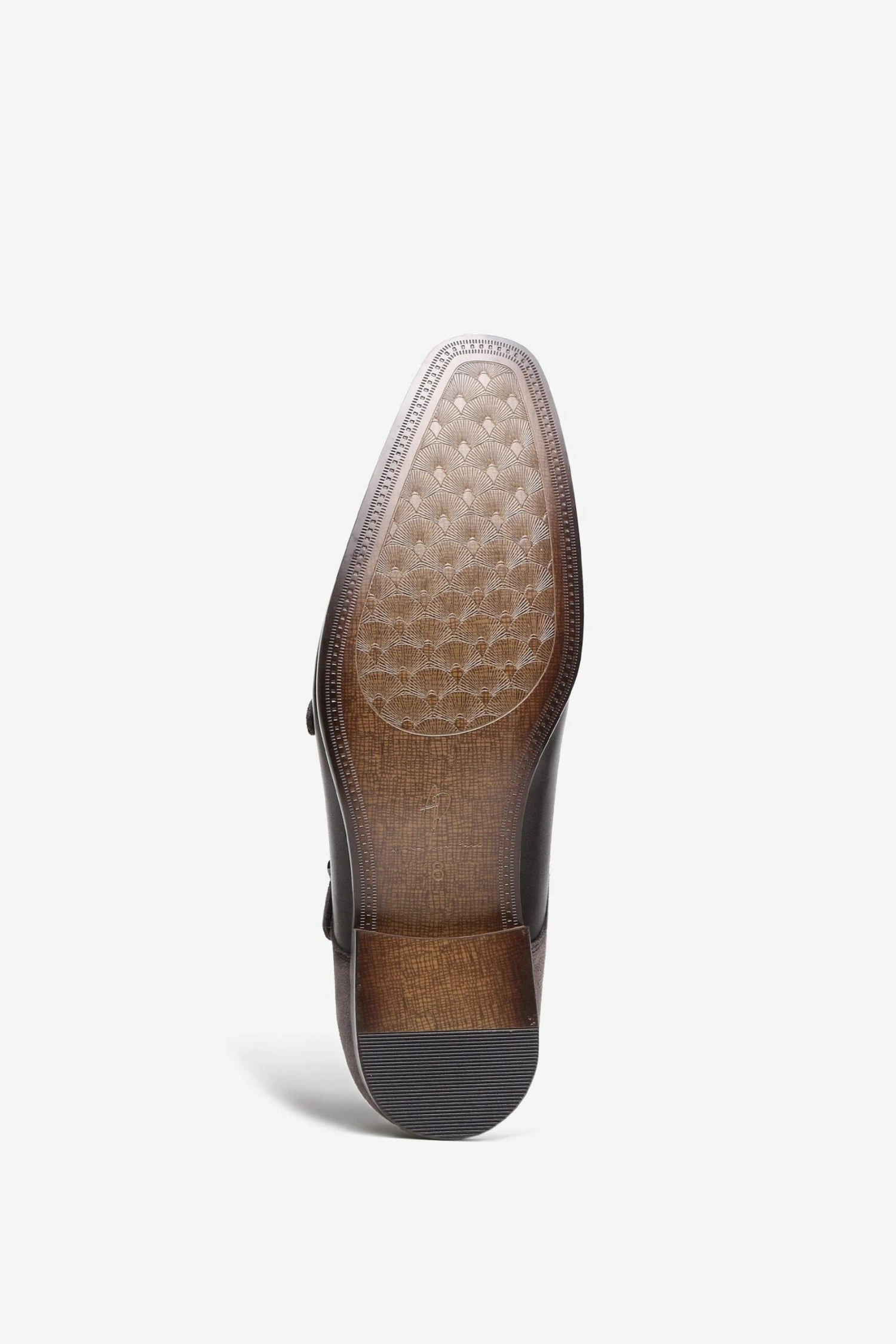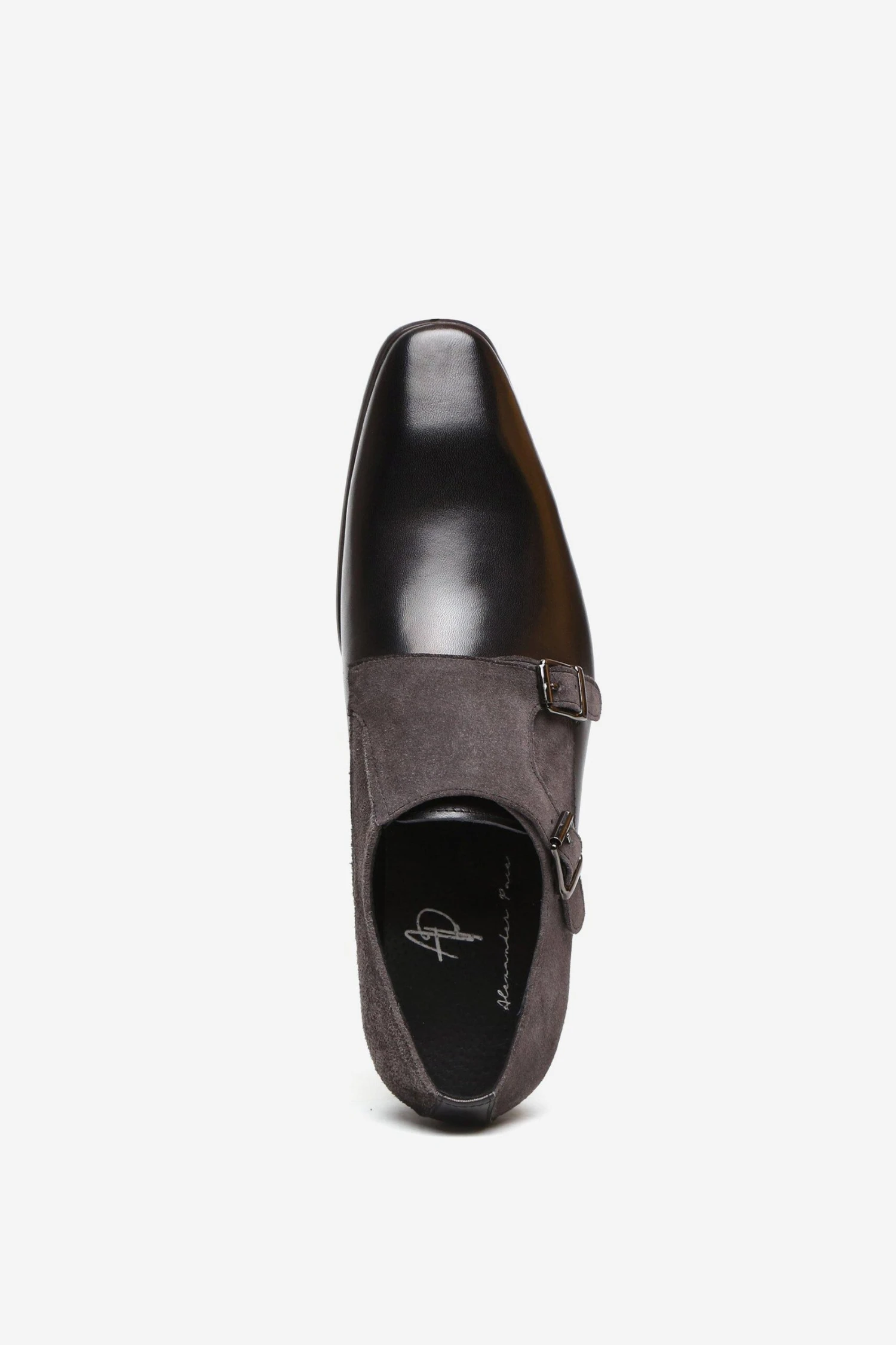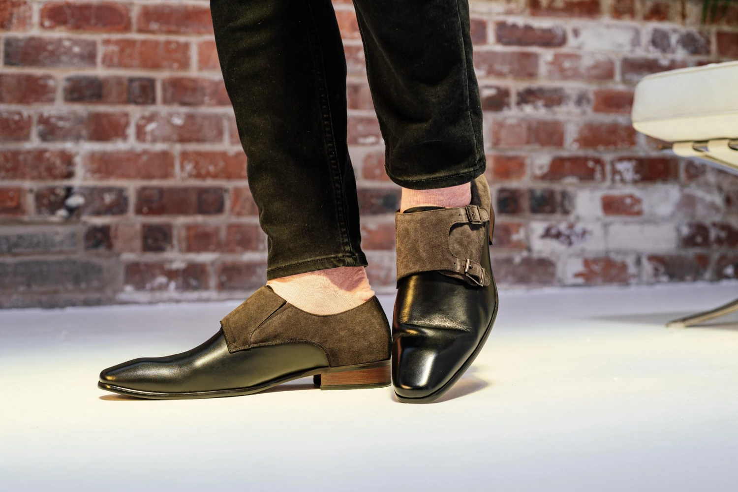 This superbly Handcrafted statement Monk shoe is made from premium leather & suede, finished with double black nickel buckle fasteners. A beautiful update on a classic shoe the full leather lining & light padded insole provide comfort and a feeling of opulence. This shoe radiates style and good grooming for men who want a traditional style with a modern twist. Slim fitting. If your foot is average width or a little wider, this will either be too tight or you will have to go up in size slightly.