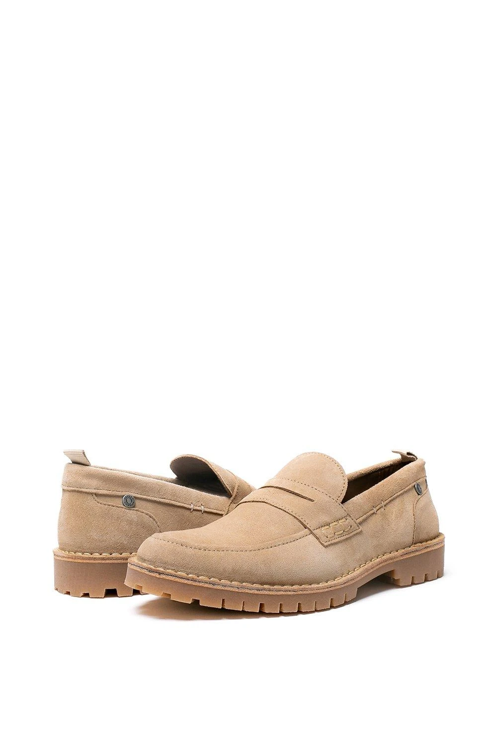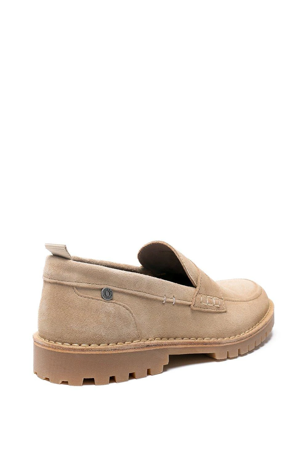 A penny suede loafer crafted for OSPREY LONDON in Portugal in sand suede with self-coloured stitching and a thick gum sole. Featuring a pull tab for easy wearing. Fully leather lined in tan with an OSPREY LONDON branded cushioned insock for comfort.