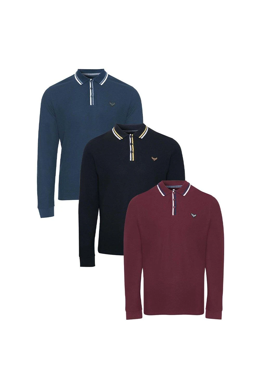 This three pack of long sleeve polo shirts from Threadbare will smarten up your everyday wardrobe. Pack includes three polo shirts with collared neckline, button fastening and tipping detail to collar. Made from soft cotton jersey fabric to ensure comfortable wear. Other styles available.