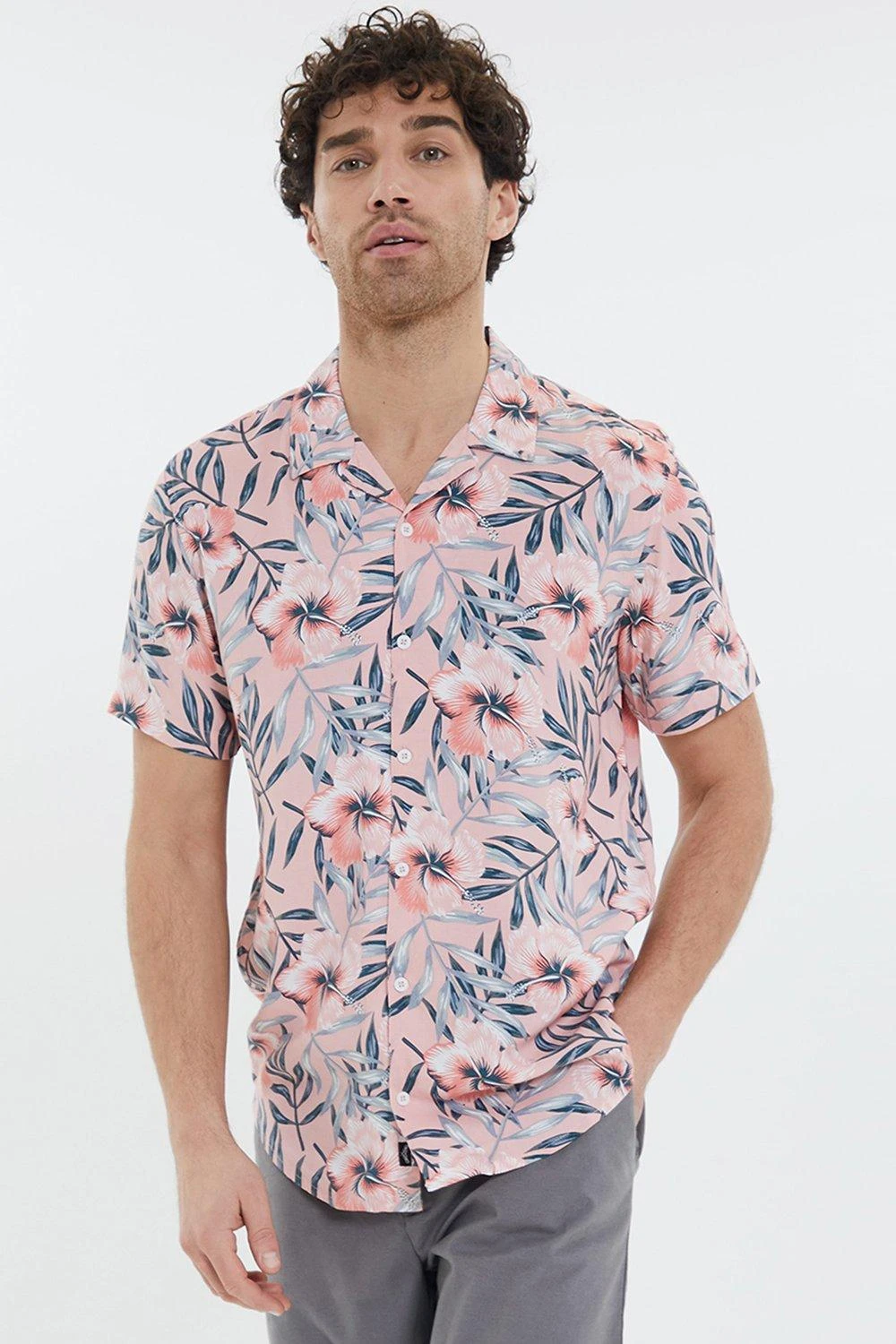 This short sleeve, floral print shirt from Threadbare is designed in a regular fit and features a revere collar. A must have style for every wardrobe this season. Team with shorts in the day or chinos at night to complete the look.