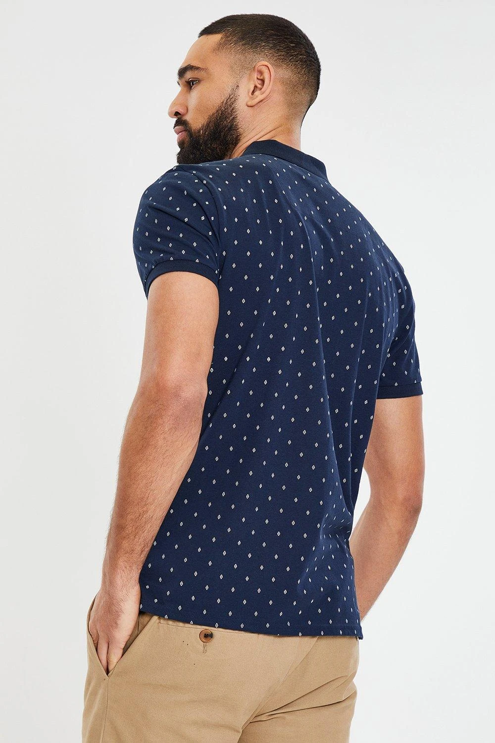 Complete your capsule wardrobe with this polo shirt from Threadbare. It features an all-over diamond geometric print and ribbed collar with concealed zip. The sleeves are finished with ribbed cuffs, and the polo is complete with a woven label on the hem and side vents for subtle styling. In a regular fit this soft, cotton jersey polo will keep you cool and comfy this season. Team with jeans, chinos or shorts for a laidback but stylish look that’s perfect for smart casual outings and everyday wear.