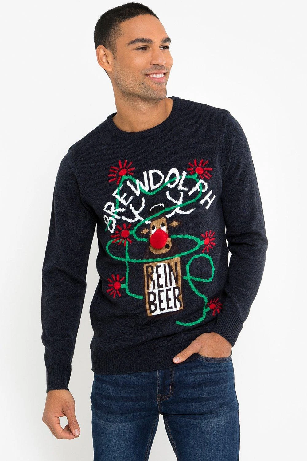 Add a little fun to your Christmas with this festive knitted jumper from Threadbare. It features a novelty reindeer design and has a classic crew neck and ribbed cuffs and hem. It is a medium weight jumper you can wear for the office party, a night out or Christmas dinner.