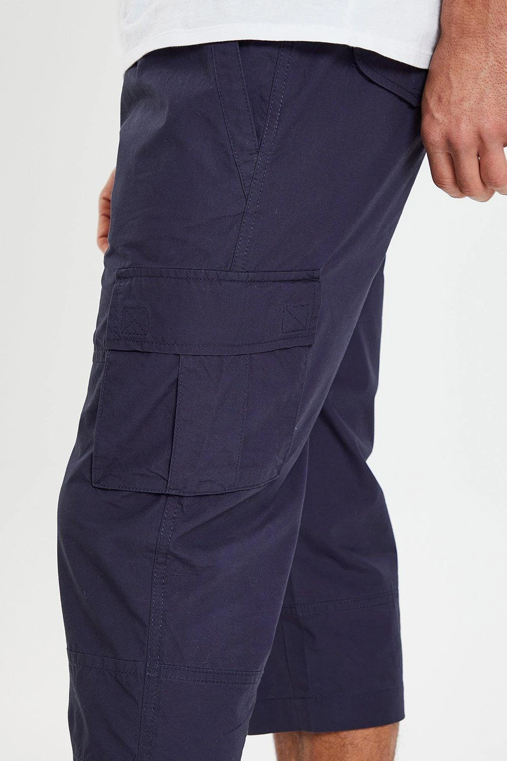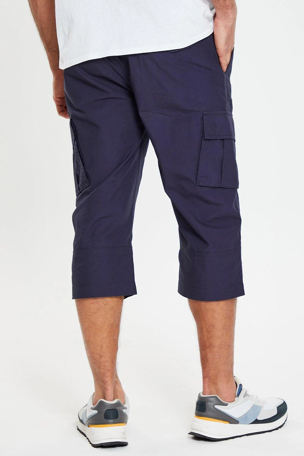 Upgrade your casual wardrobe with these three-quarter length trousers from Threadbare, in an on-trend cuffed cargo style. Cut in a slim fit, these cotton jogger-like trousers have elasticated cuffs and have a zip fly and an elasticated, drawstring waistband for comfort. This style features front side pockets and back welt pockets, and cargo pockets on the thighs.