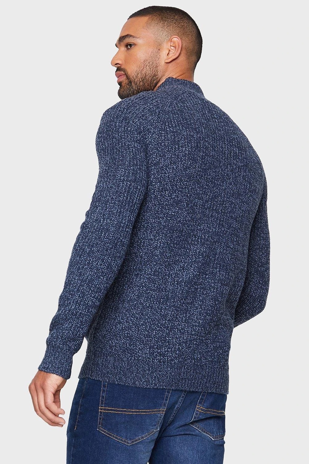 Refresh your knitwear with this zip through, knitted cardigan from Threadbare. It features a textured knit on the body and sleeves, two side pockets and ribbed funnel neck, cuffs and hem. Ideal for layering. Other colours available.