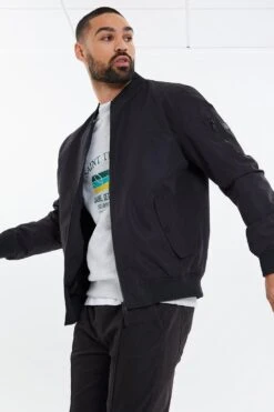 This zipped bomber jacket from Threadbare comes with two front pockets with snap fastenings. This style features Threadbare branding on the arm and is finished with ribbed collar, hem and cuffs. Other colours and styles available.