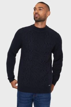 This medium weight, cable knit jumper from Threadbare features a ribbed funnel neck, cuffs and hem. Made in a soft yarn for comfort, this is a great piece to keep you warm this season. Other styles and colours available.