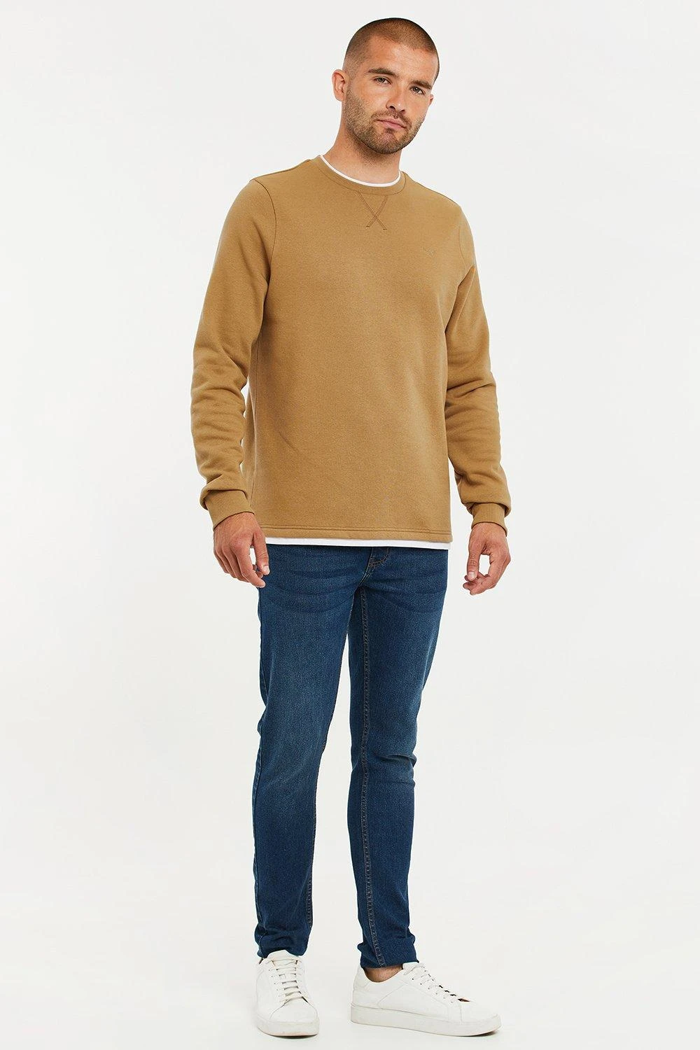This crew neck sweatshirt from Threadbare features ribbed cuffs and hem. This style features a mock t-shirt to create a layered look. Style with jeans or chinos. Other colours available.