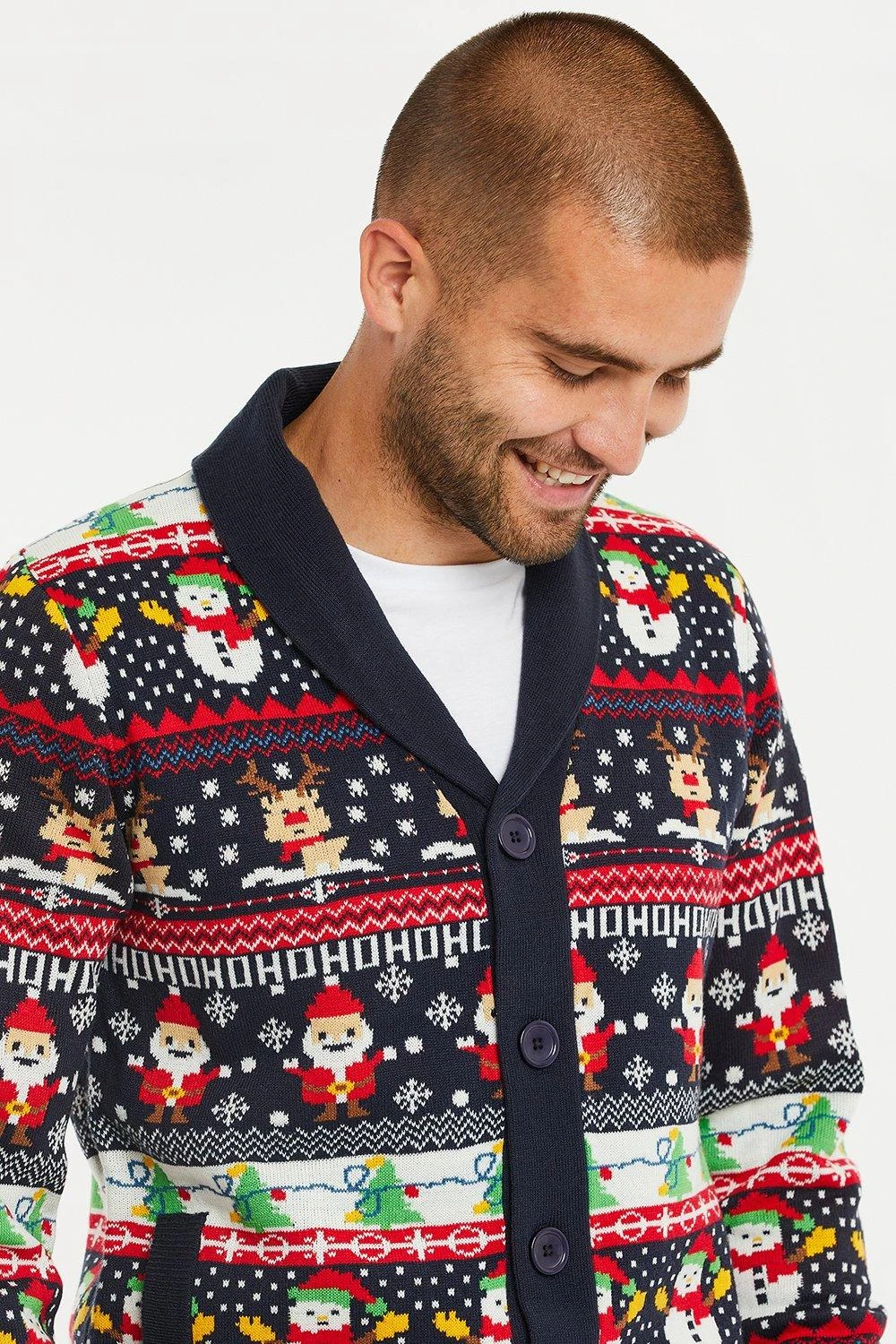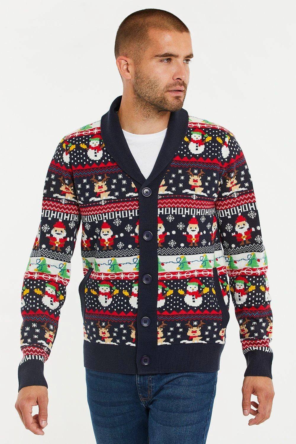 Add a little fun to your Christmas with this festive, novelty knitted cardigan from Threadbare. It features button through fastening, shawl collar and has ribbed cuffs and hem. Perfect to keep you cosy this Christams.