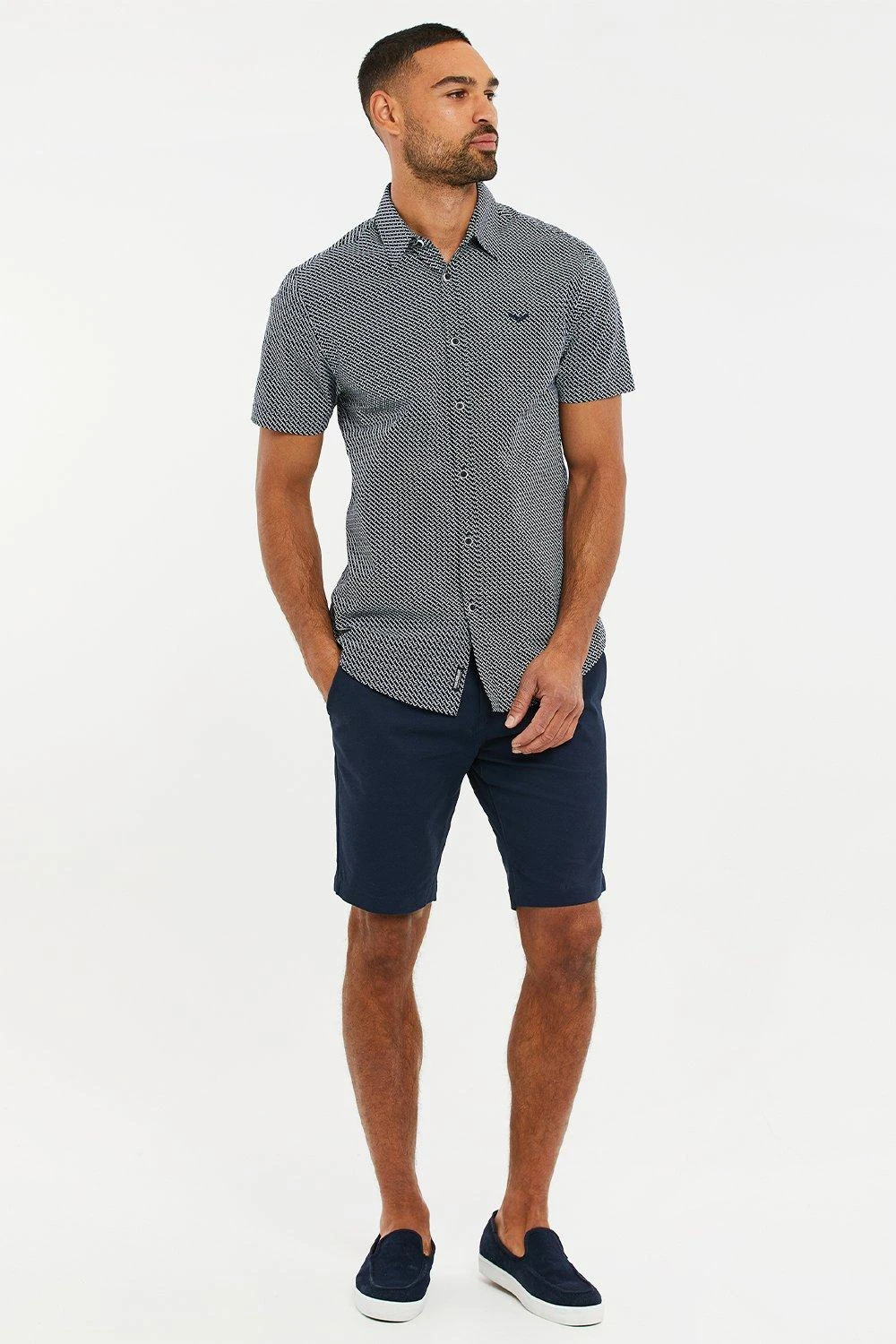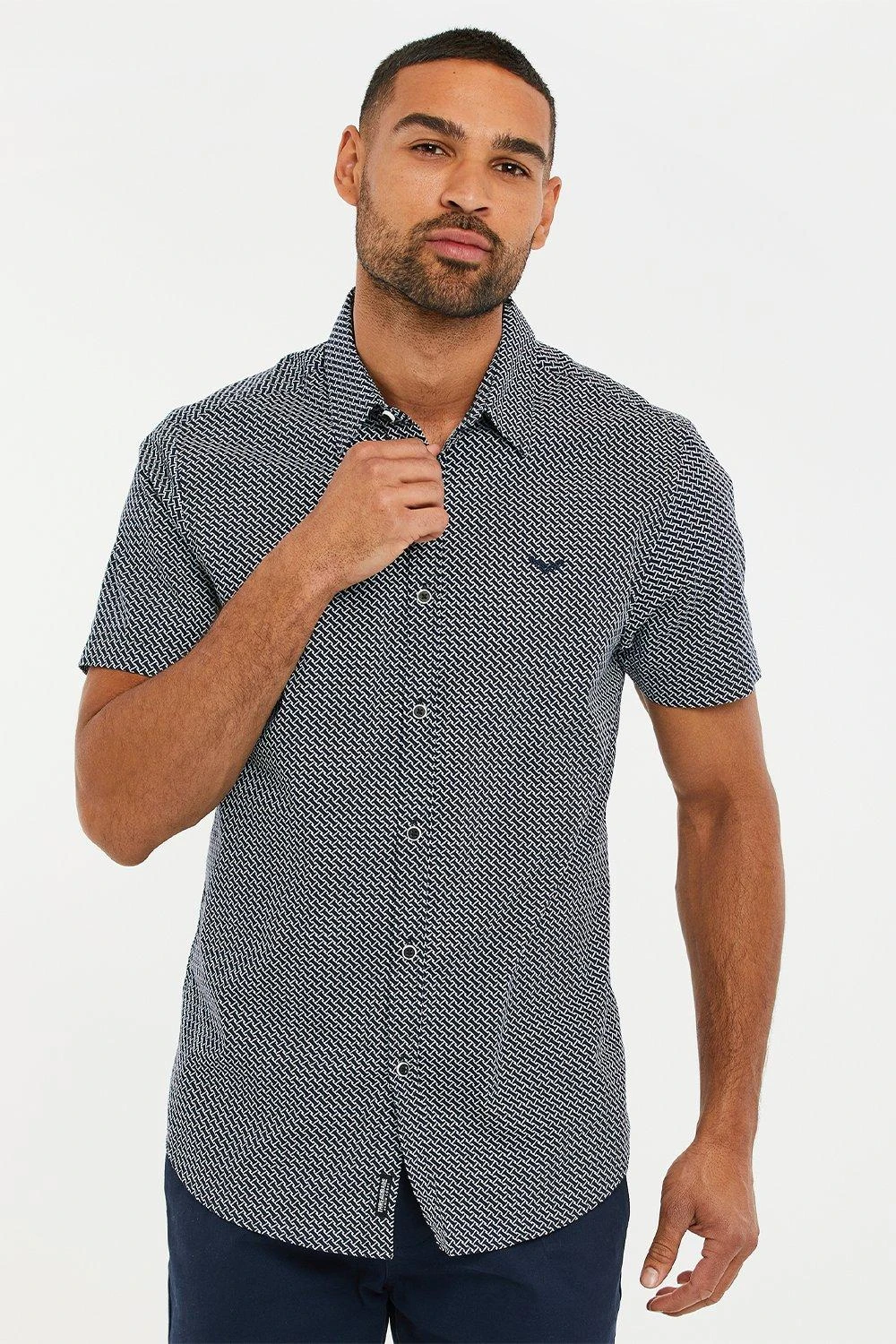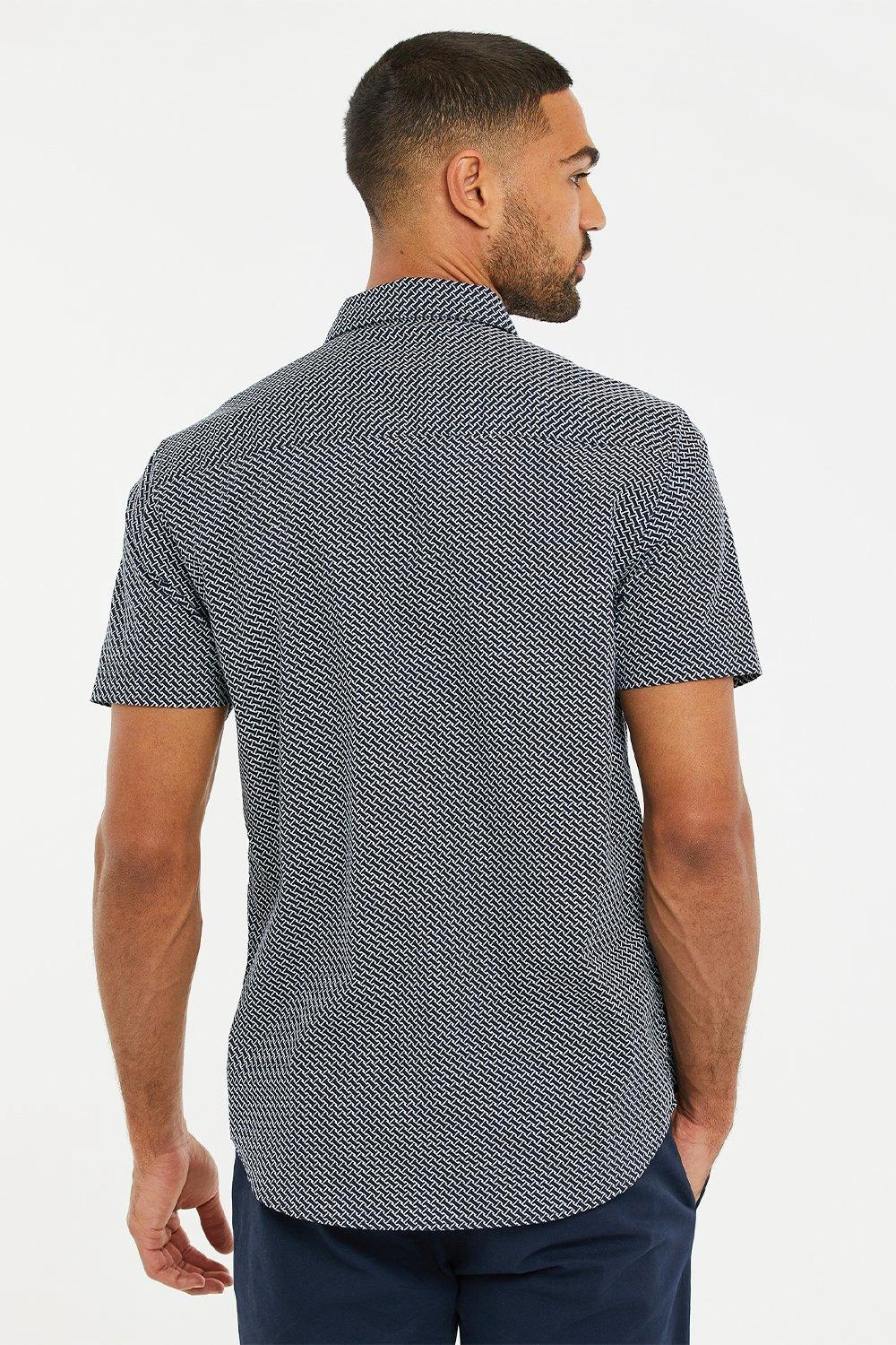 This cotton shirt from Threadbare features an all-over geometric print. Team with jeans or trousers for a smart-casual look. Available in other prints.