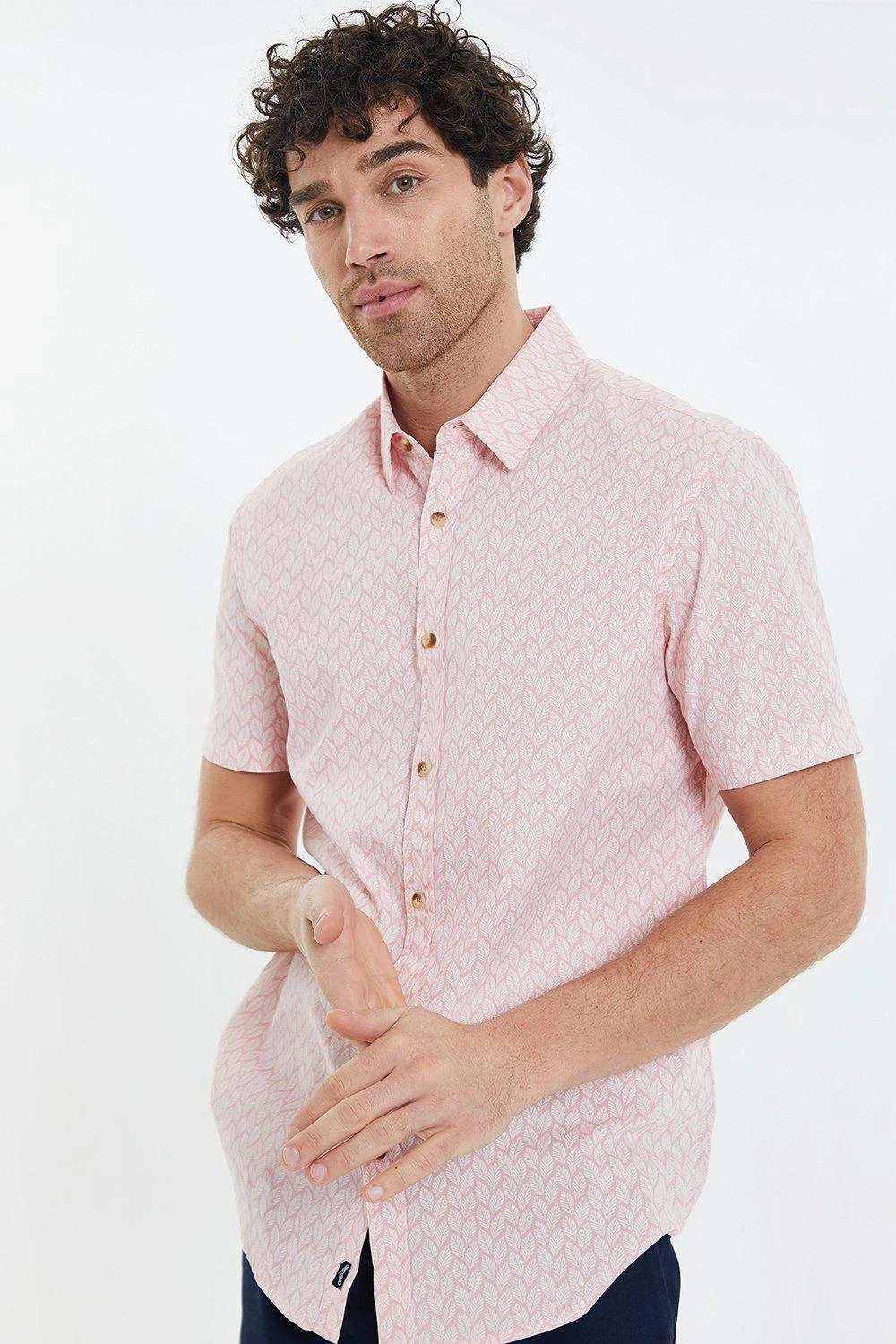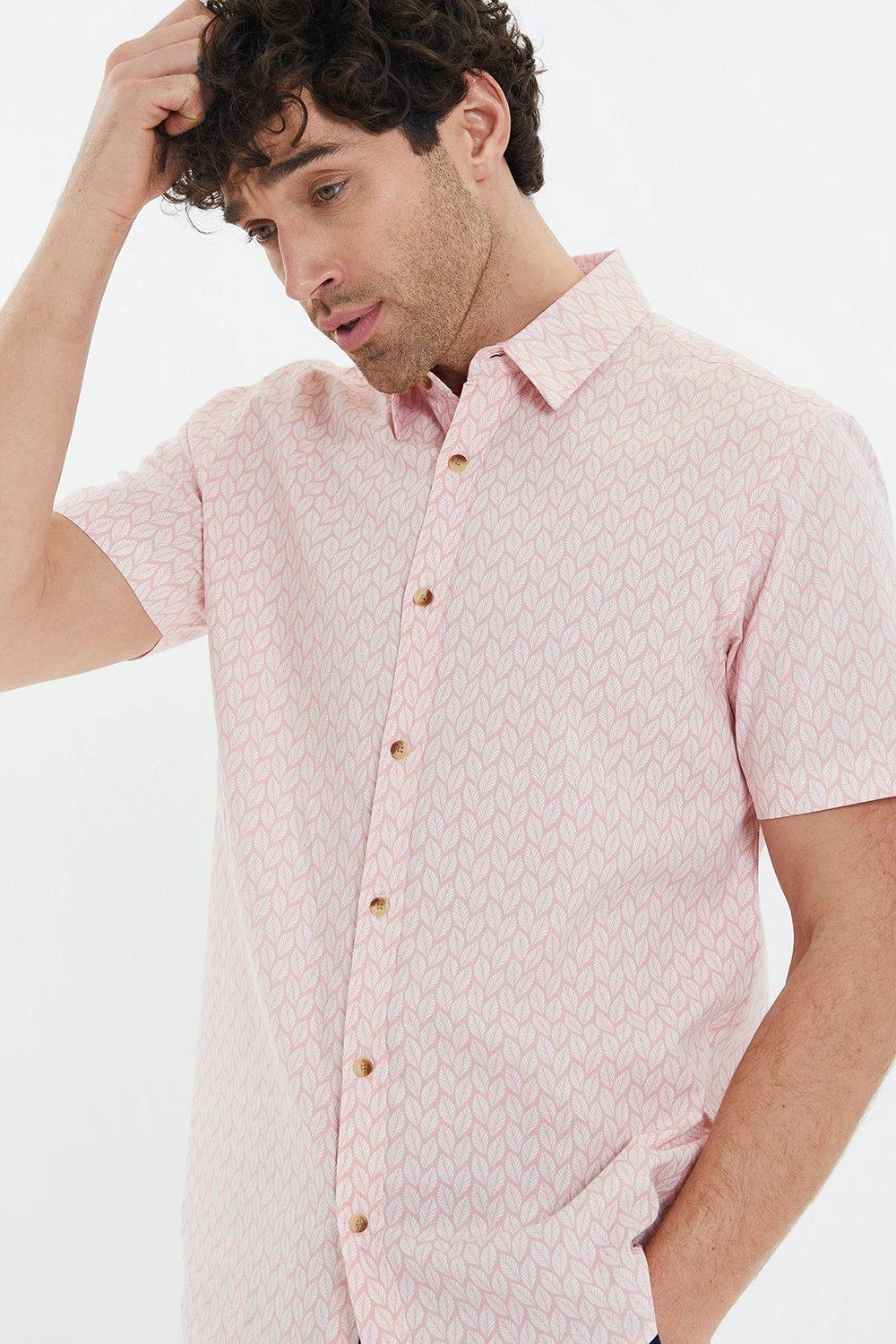 Freshen up your wardrobe with this leaf print, short sleeve shirt from Threadbare. Designed in a regular fit and made in a printed cotton poplin fabric. Team with a pair of chinos or chino shorts to complete the look.