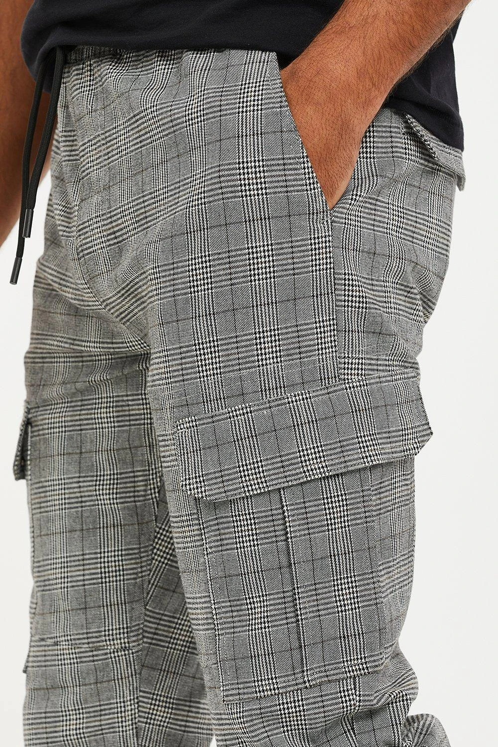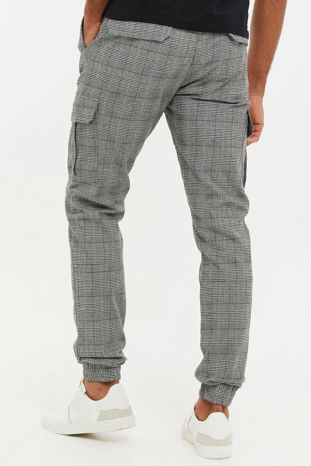 Upgrade your casual wardrobe with these checked cargo trousers from Threadbare. Designed in a slim fit, these jogger like cuffed trousers feature a cargo pocket on each leg and front and back pockets. An elasticated waistband with zip fly and drawcords finish this easy style which contains a little stretch for comfort. Throw on a hoodie and a padded gilet for an off-duty look, or add a plain white t-shirt and a shacket for a laidback luxe feel.