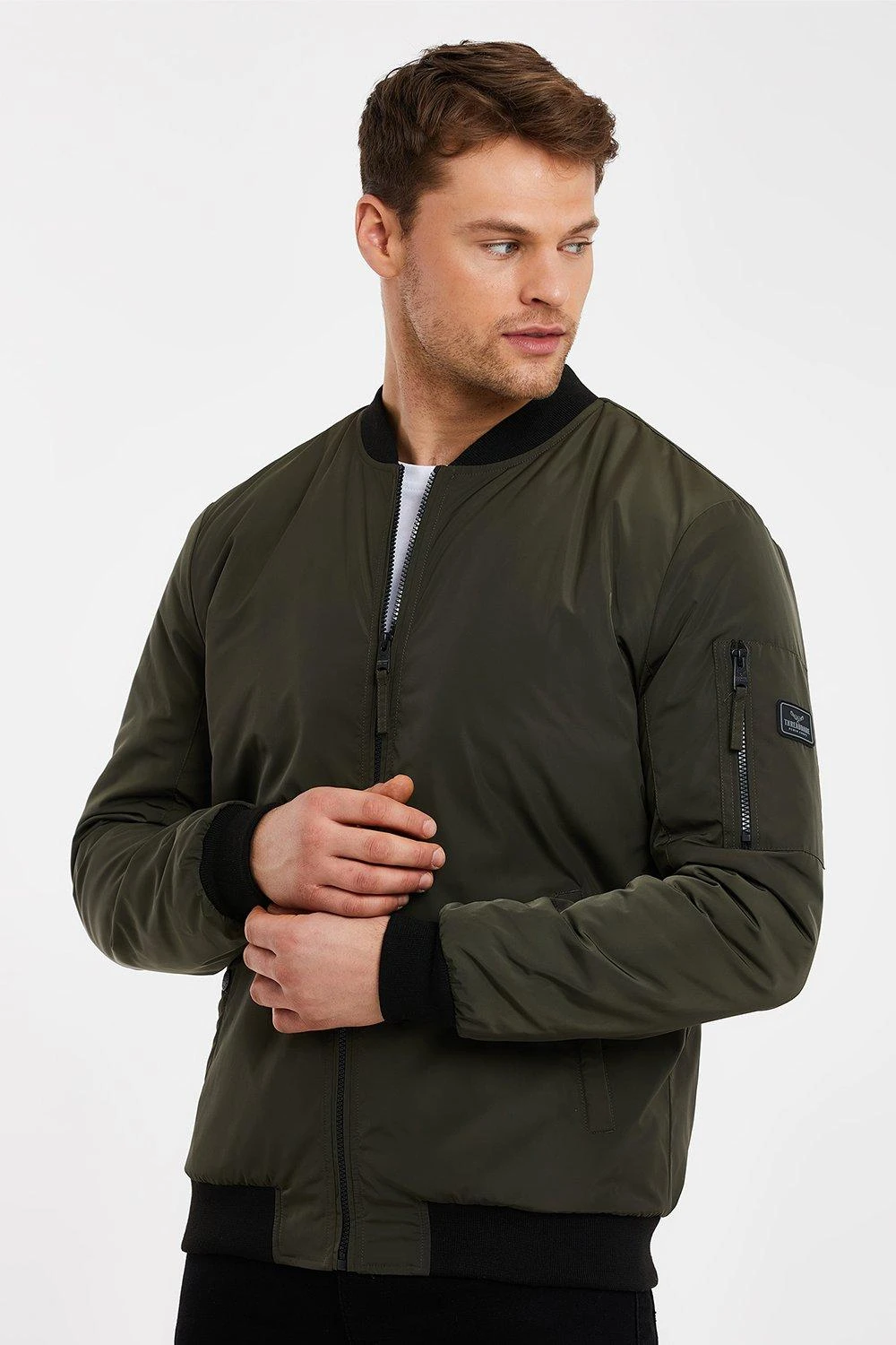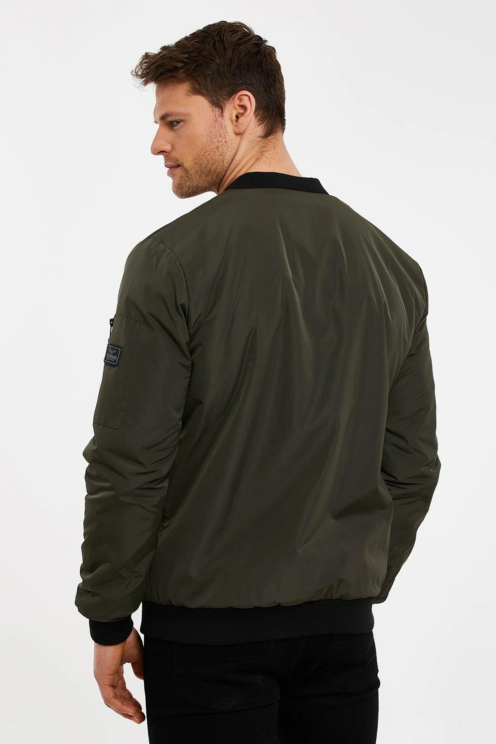 This bomber jacket by Threadbare is borg lined and features ribbed cuffs and hem. This styles has two snap fastening front pockets and a handy zip up pocket on the arm. Other colours available.