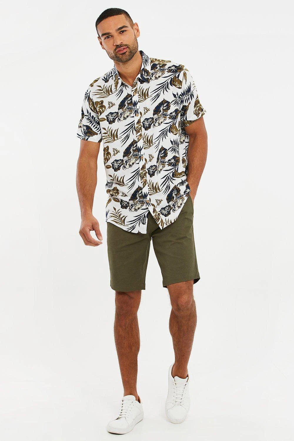 This eye-catching leaf print shirt from Threadbare is designed in neutral tones and is easily dressed up or down. Other prints available.
