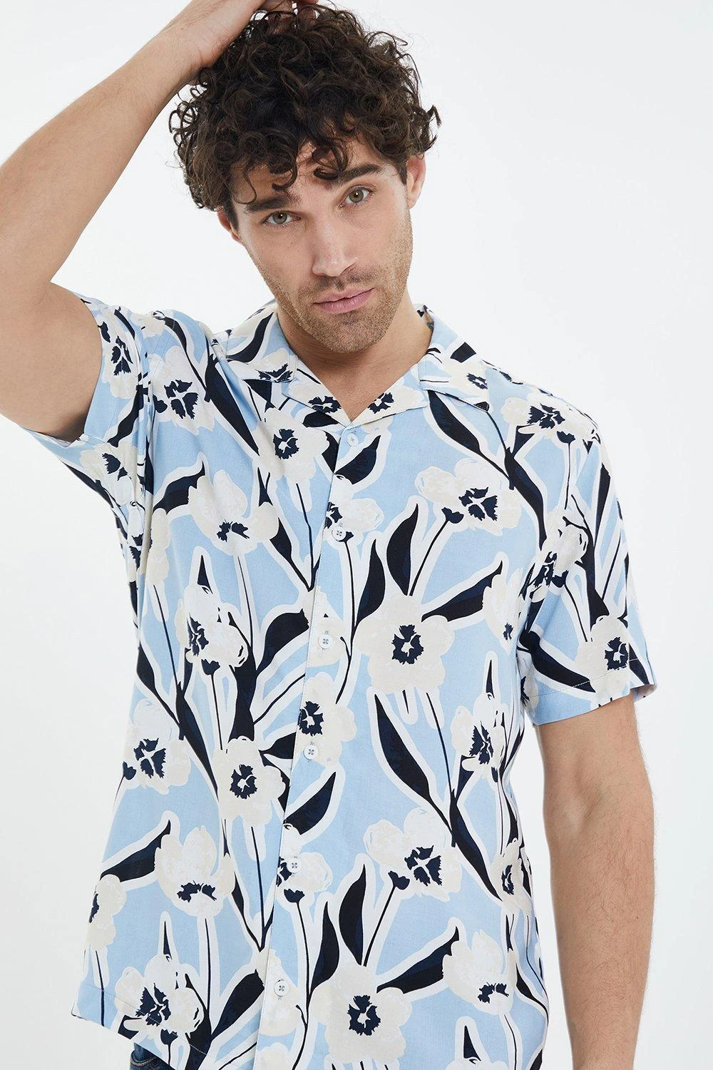 This short sleeve, floral print shirt from Threadbare is designed in a regular fit and features a revere collar. A must have style for every wardrobe this season. Team with shorts in the day or chinos at night to complete the look.