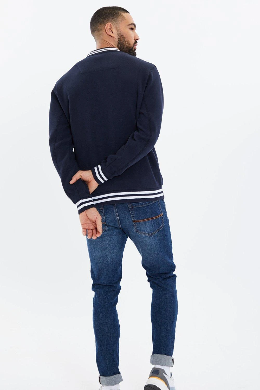 Update your casual wardrobe with this fleece baseball jacket from Threadbare. This varsity style bomber jacket features a NYC graphic on the chest, stripe tipping detail to the ribbed collar, cuffs and hem and two angled side pockets. The dropped shoulder and easy fit make it a great layer to add to any casual outfit.