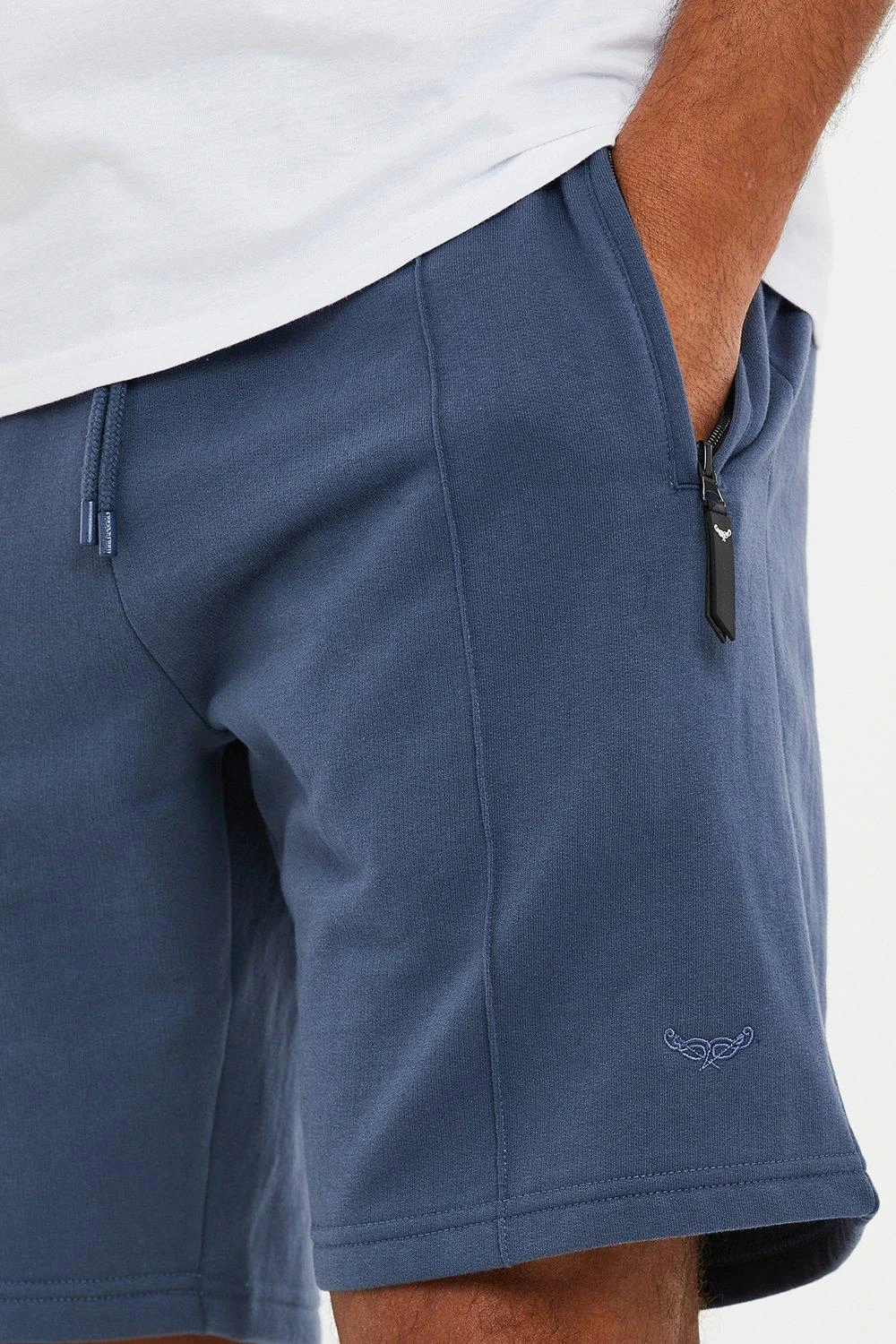 These fleece shorts from Threadbare have a pintuck seam down the front of the legs and feature an elasticated waistband with a branded drawstring and side zip pockets. They are made in a soft cotton blend fabric making this a very comfortable style. Finished with raised rubber Threadbare branding to the hem. Other colours available.