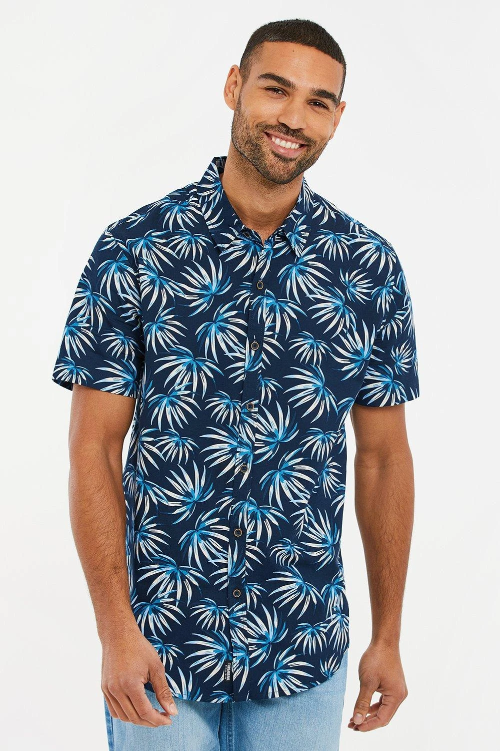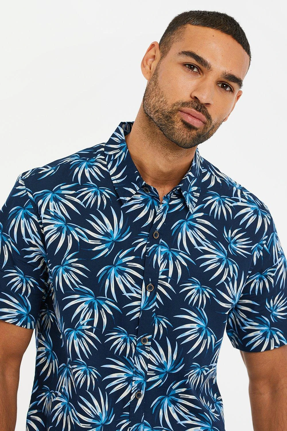 This cotton shirt from Threadbare features an all-over palm print and is ideal for layering. Other colours and styles available.