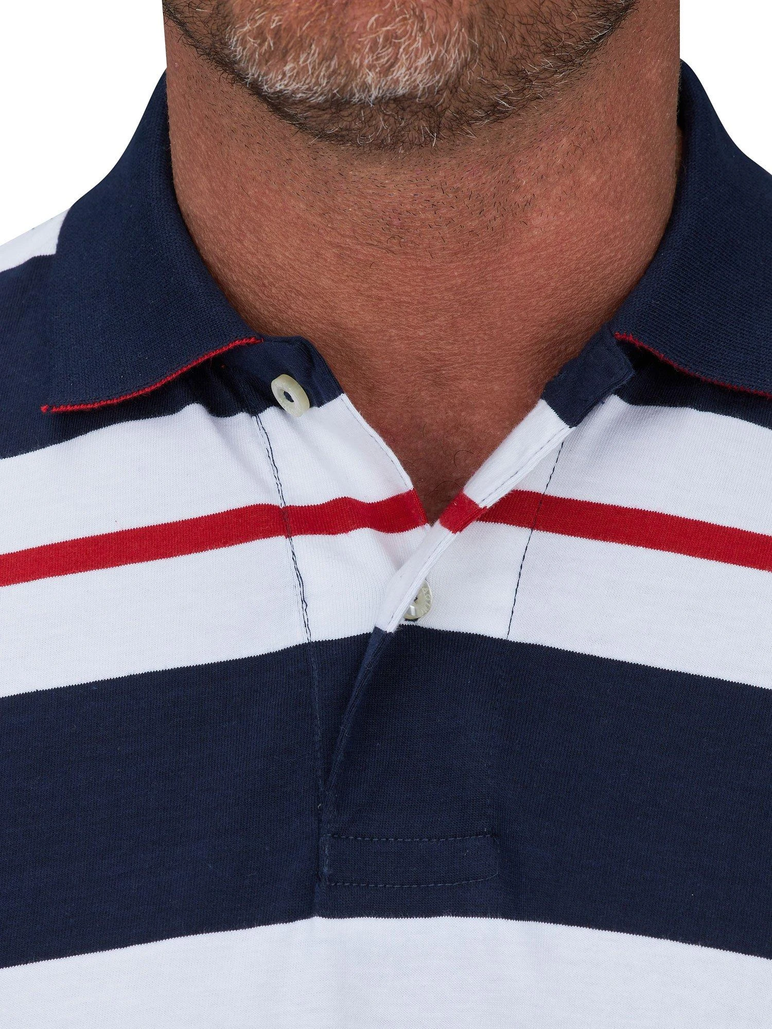 Combine style and comfort in one with a bold Two Tone Stripe Jersey Polo. Crafted with care, love, and a high quality comfort cotton mix, this classic striped polo with a bright twist is just the one for your wardrobe – whether paired with Raging Bull’s quality denim or your choice of shorts.