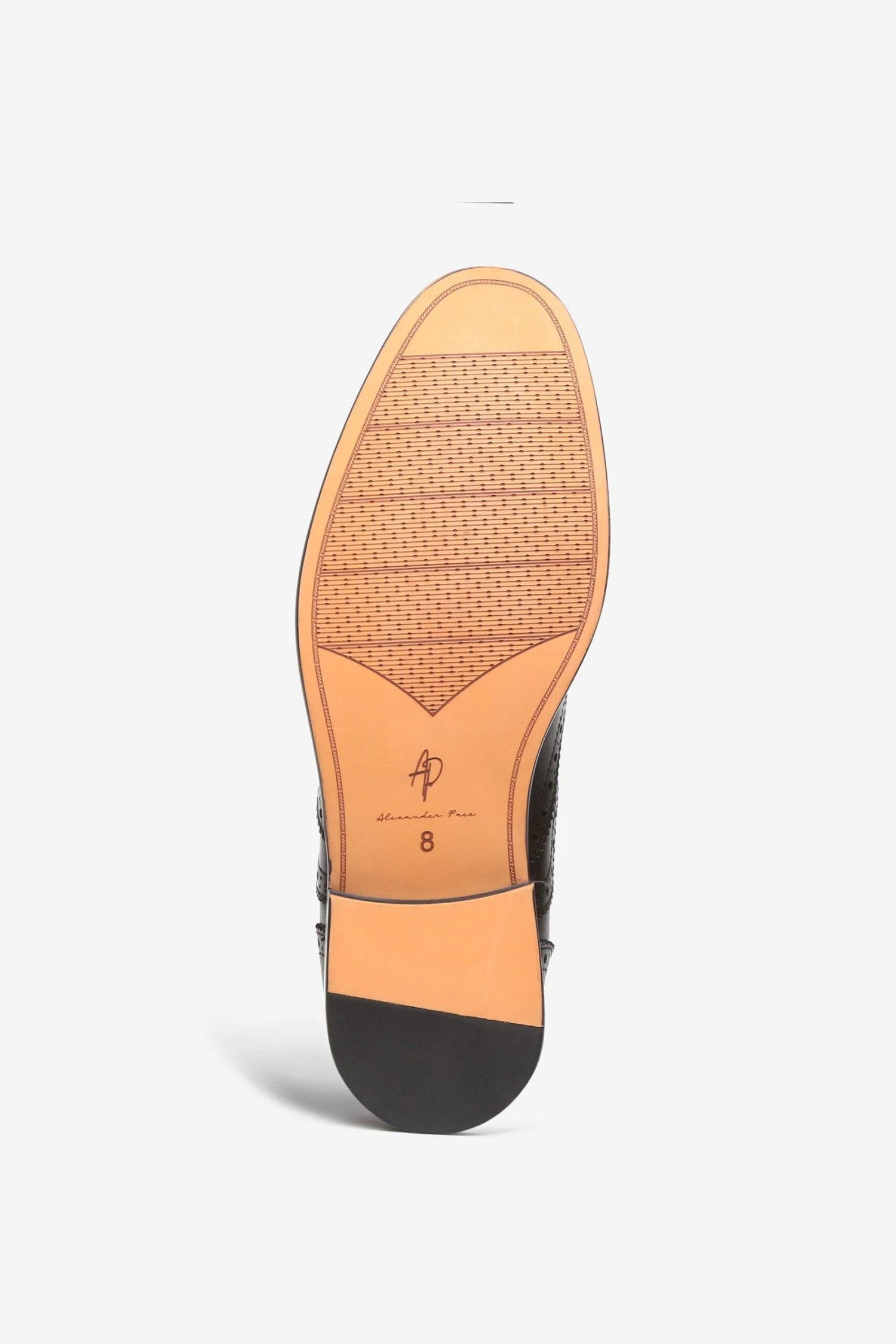 The Tyburn Yard men’s Handcrafted shoe has been updated and based on a traditional country brogue, with a patterned lightweight rubber sole and contrast heel. Fastening the brogue are waxed tonal-brown laces through five pairs of blind eyelets. These brogues are a wardrobe staple for all stylish gents and make a perfect fashion forward formal shoe, whilst looking just as good with casual attire. Slim fitting. If your foot is average width or a little wider, this will either be too tight or you will have to go up in size slightly.