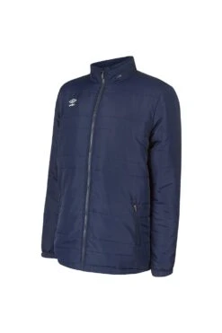 Keep warm at the sidelines with the Umbro Club Essential Bench Jacket filled with cosy poly padding. Handy features include a concealed hood and two zip pockets. The full-length zip fastens to a stand-up collar and drawcords on the inner hem keep out the draughts, giving you extra protection from the elements. • 100% Polyester • Poly Filled Padding • Concealed Hood • Concealed Zip Pockets • Drawcords at Inner Hem • Transfer Print Stacked Diamond Logo