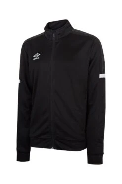 This classic Umbro tracksuit jacket is perfect for wearing over trainingwear, or as a casual lightweight jacket. It comes with pockets at either side with zip closures to keep your belongings safe and a classic printed Umbro logo on the upper chest. To add a bit of style, there is a diamond pattern printed across the shoulders and a white contrast stripe across the back.